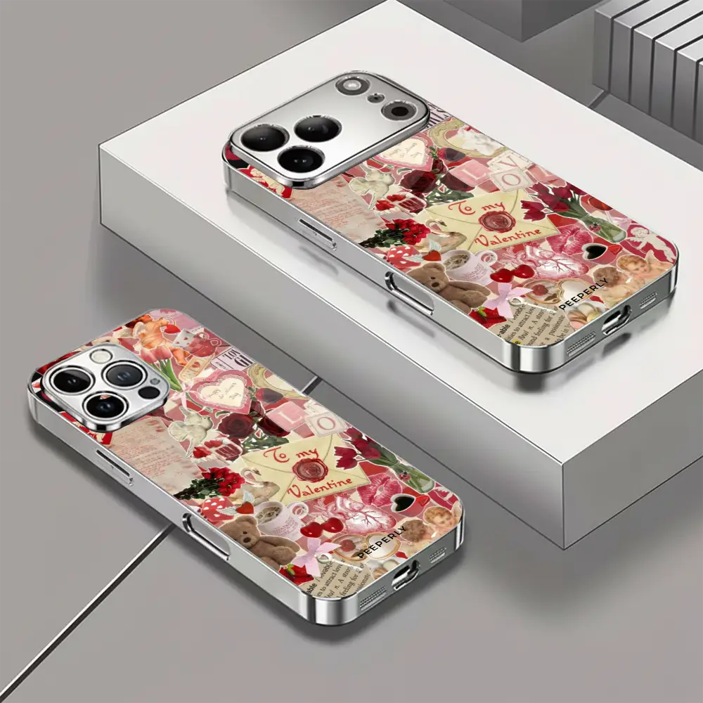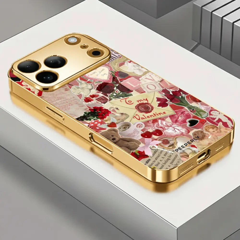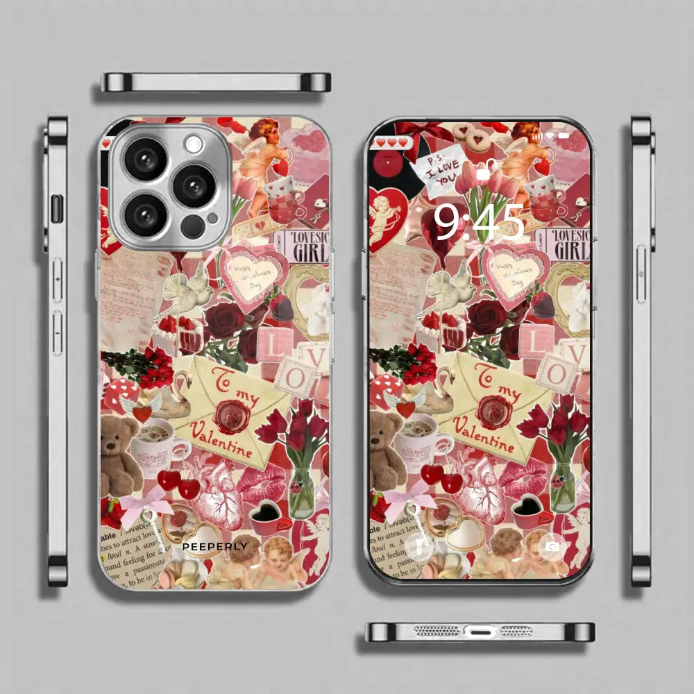 A charming collage of vintage love notes, roses, hearts, and soft blush tones that feels like flipping through a cherished scrapbook. This design blends old-world romance with cozy warmth, perfect for those who adore timeless aesthetics and sentimental details.