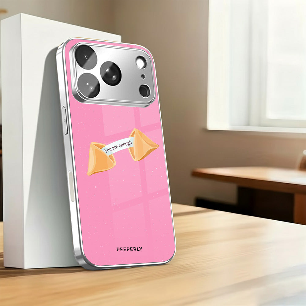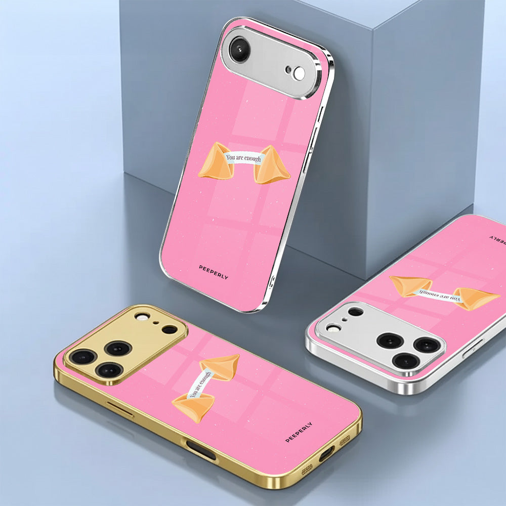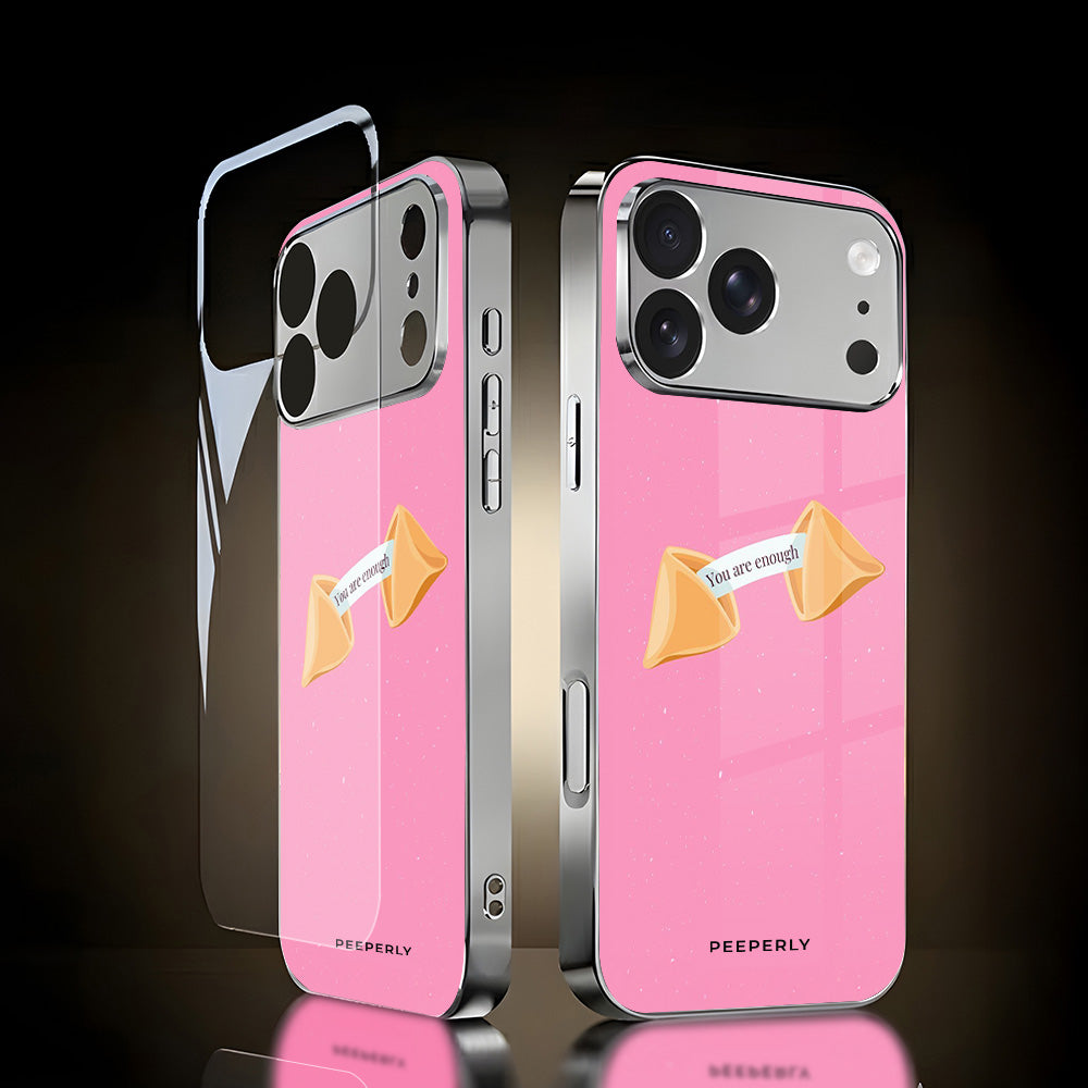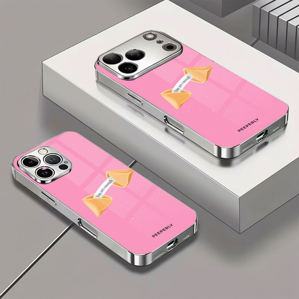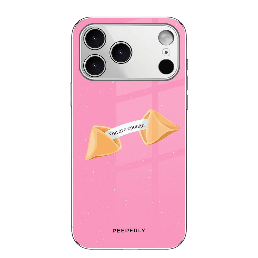 A gentle reminder wrapped in the sweetest design. This pink fortune-cookie case carries a simple but powerful message—you are enough, just as you are. Minimal, calming, and full of warmth, it’s perfect for everyday self-love and quiet confidence.