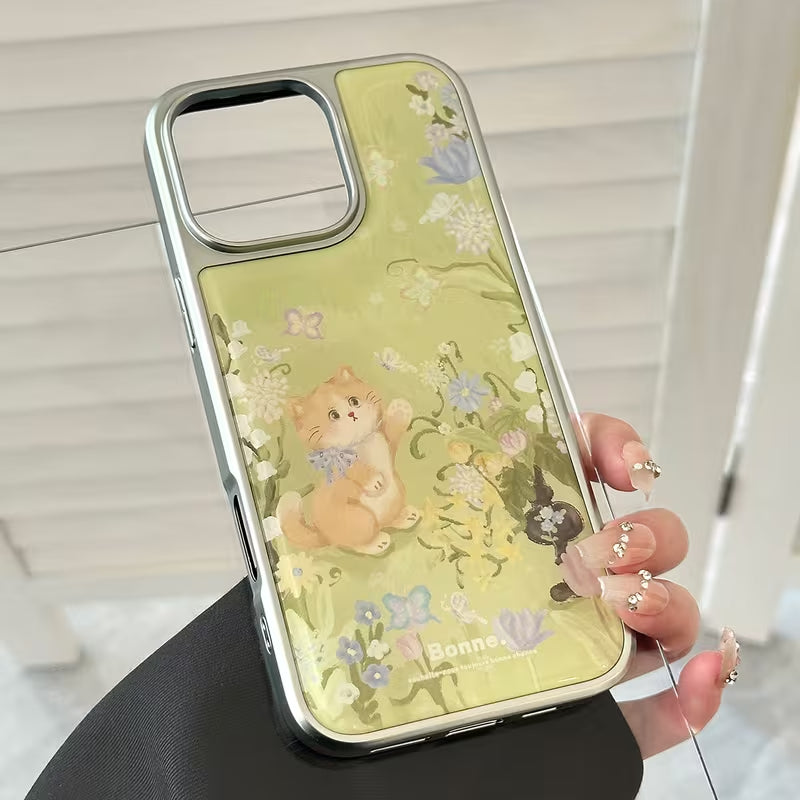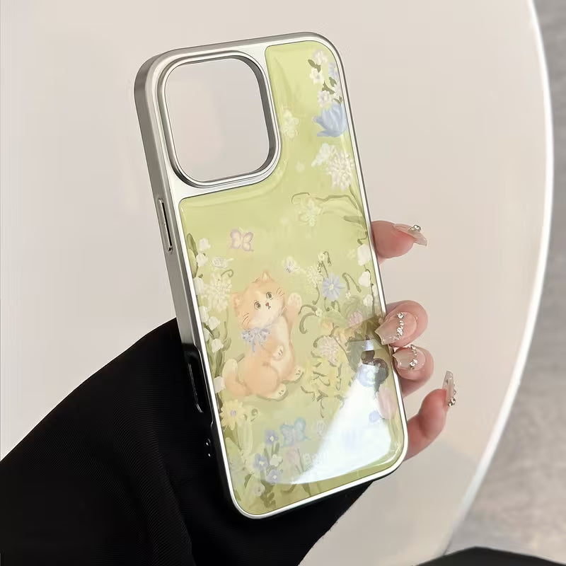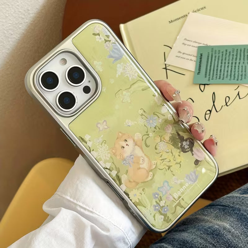 Bring a touch of soft countryside charm to your phone with the Meadow Kitty Case. Featuring an adorable kitten nestled among delicate wildflowers, this design blends pastel greens, florals, and gentle illustrations for a calm, heart-warming look.