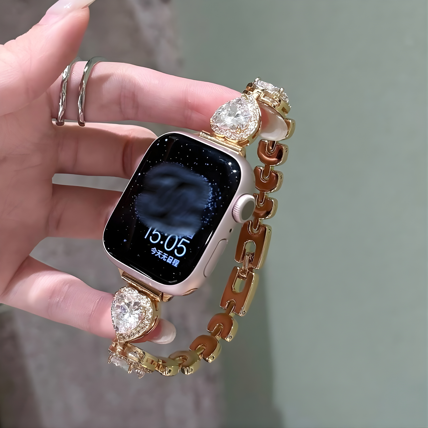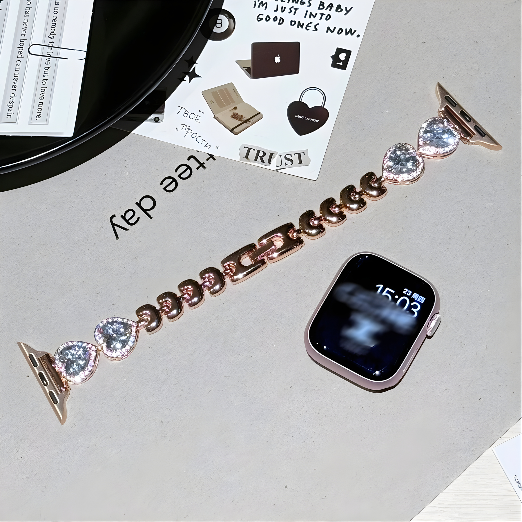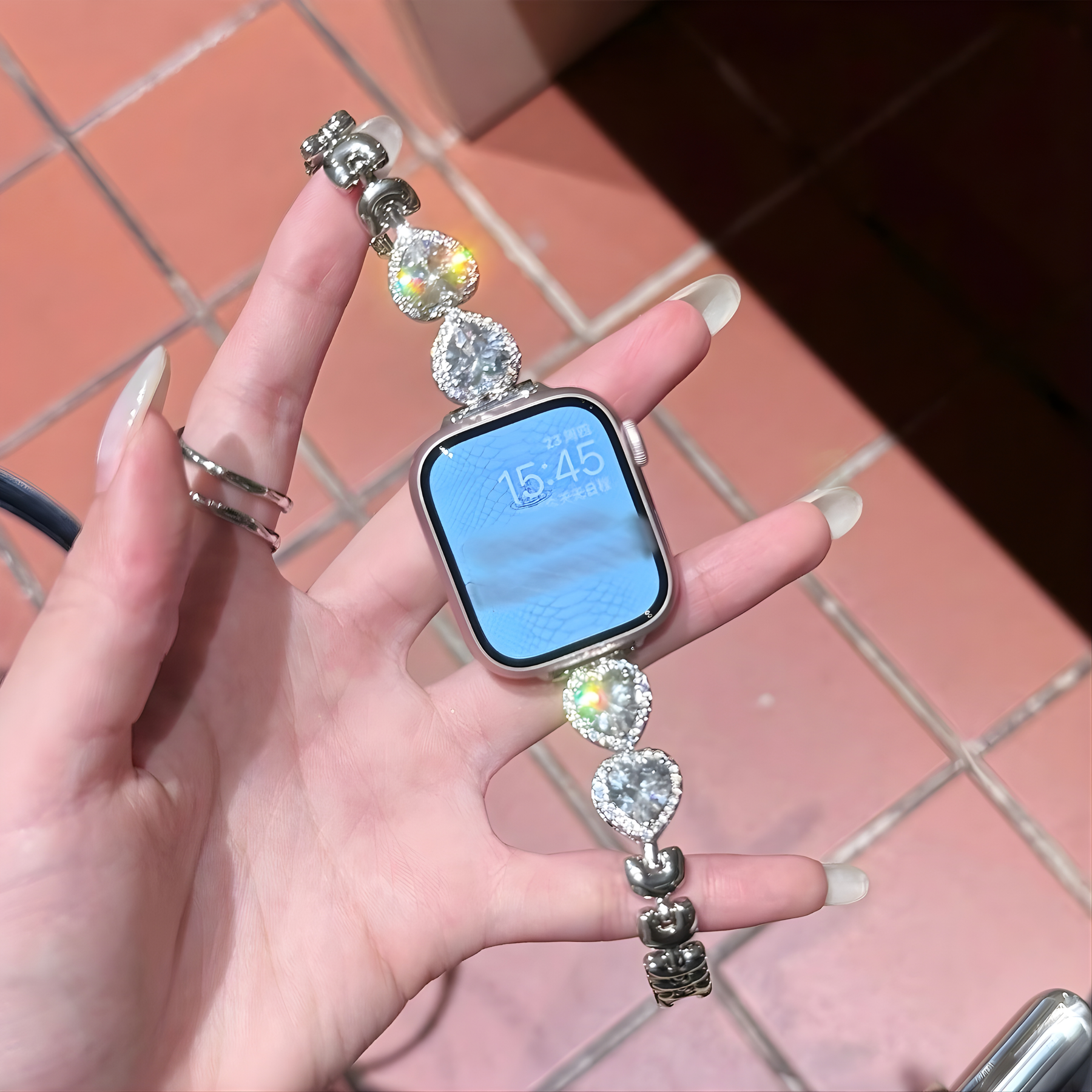 This watch strap will add a touch of glamour and sparkle to any outfit. With its heart-shaped diamonds, it's both elegant and playful. A must-have for fashion-forward individuals who love to make a statement. Time to shine!