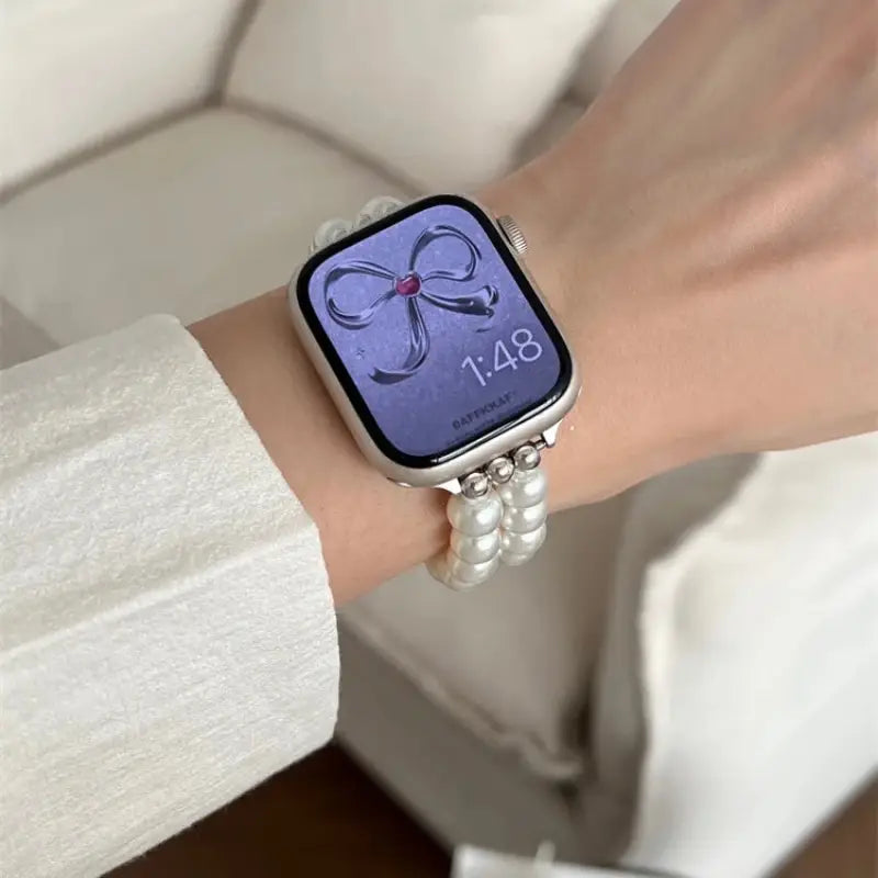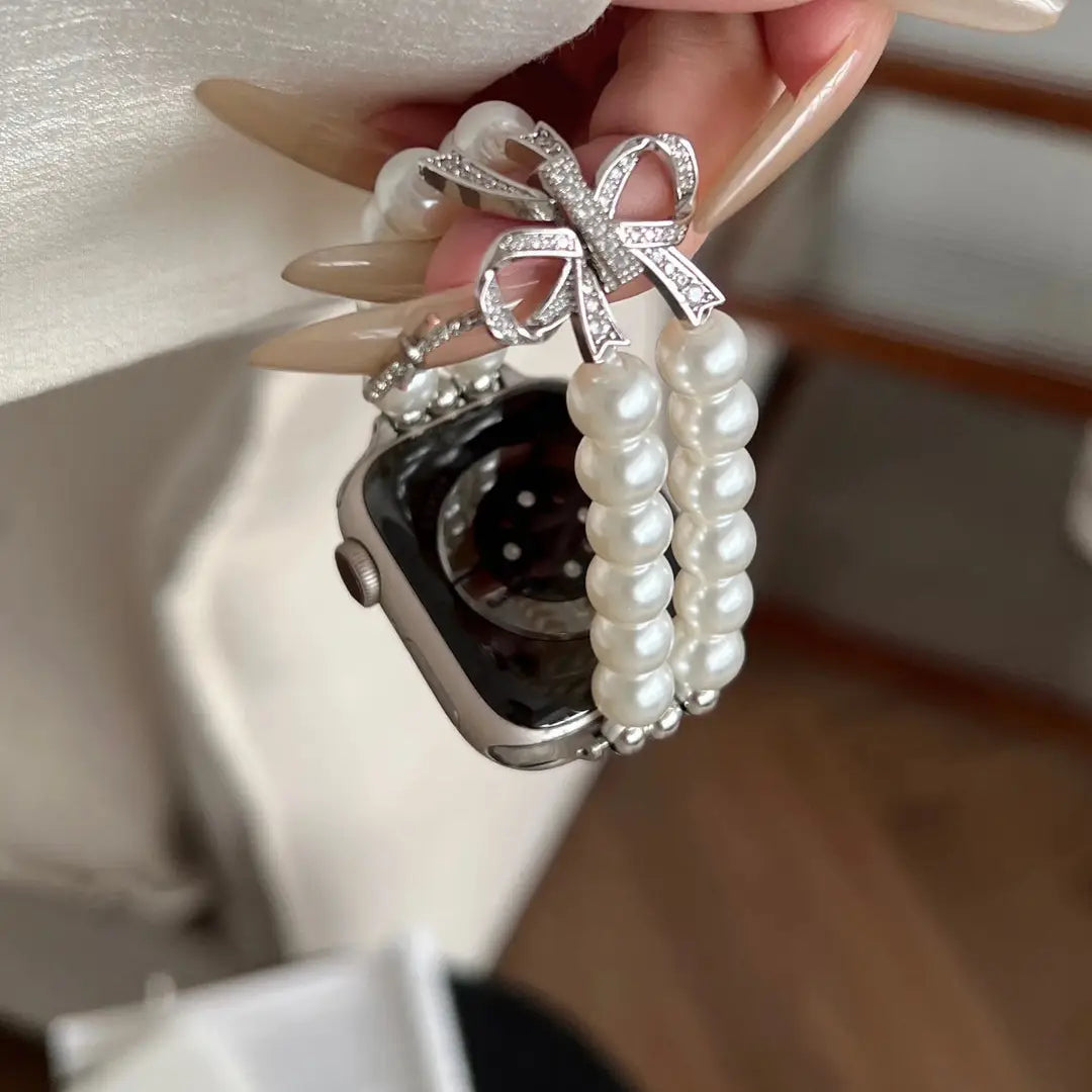 The Pearl Bow Watch Strap brings timeless elegance and feminine charm to your wrist. Designed with lustrous pearl beads and finished with a delicate crystal-accented bow, this strap offers a graceful, jewelry-inspired look.
