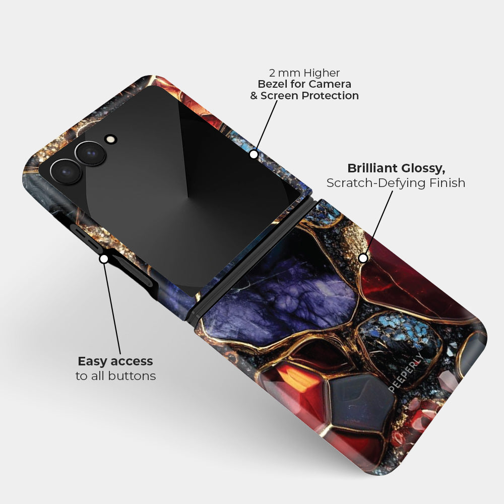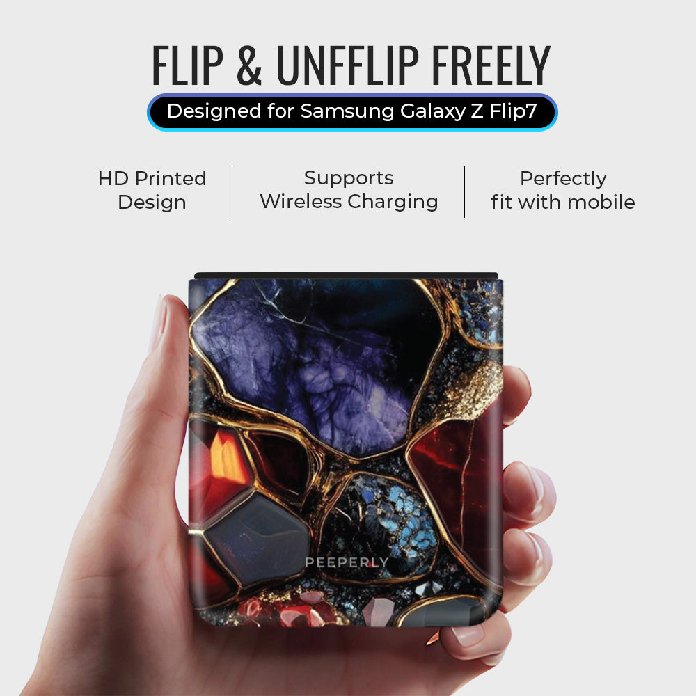 Radiate timeless opulence with Auric Gemstone, a design that captures the essence of nature’s rarest treasures. Deep sapphire, molten amber, and royal amethyst tones merge seamlessly beneath veins of liquid gold — creating the illusion of a handcrafted gemstone masterpiece.