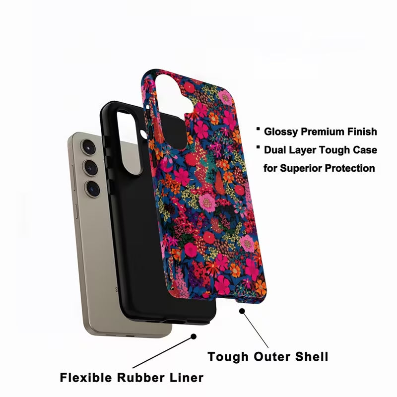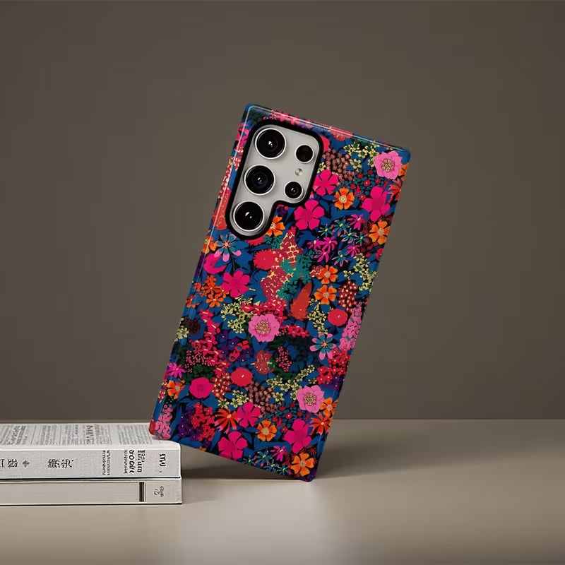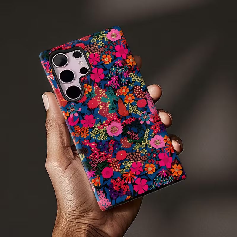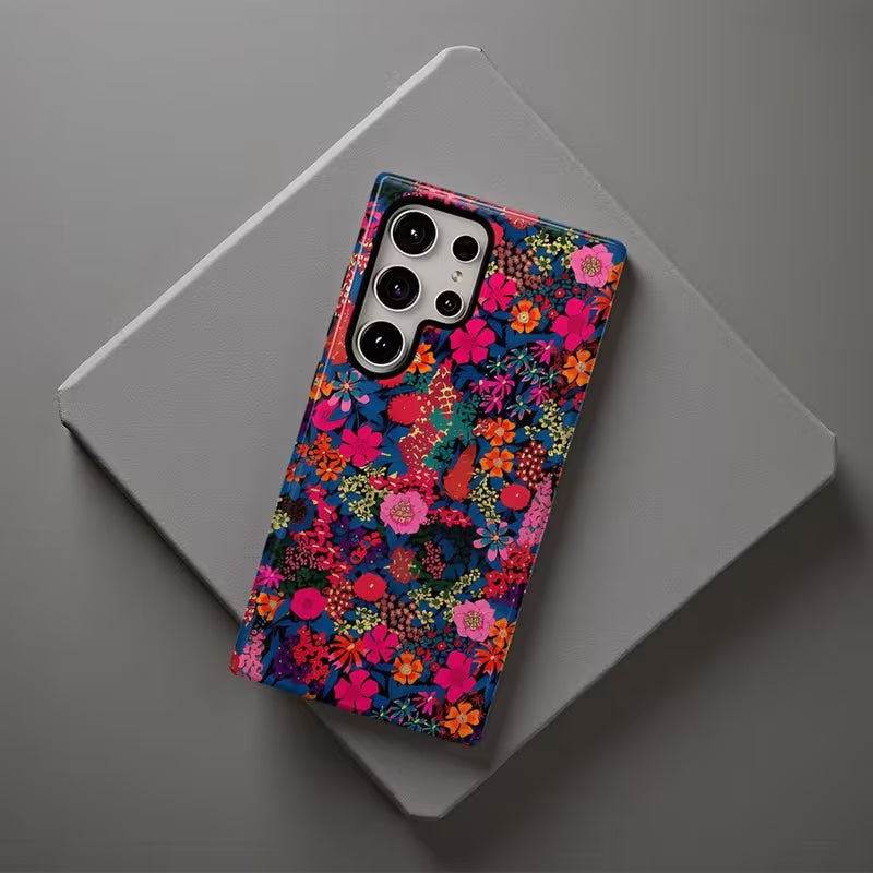 The Bloom Mirage case is where artistry meets vibrance — an explosion of florals that seem to dance under shifting light. With a kaleidoscope of bold hues — magenta, coral, teal, and gold — this design evokes the magic of a blooming paradise glimpsed through a dream.