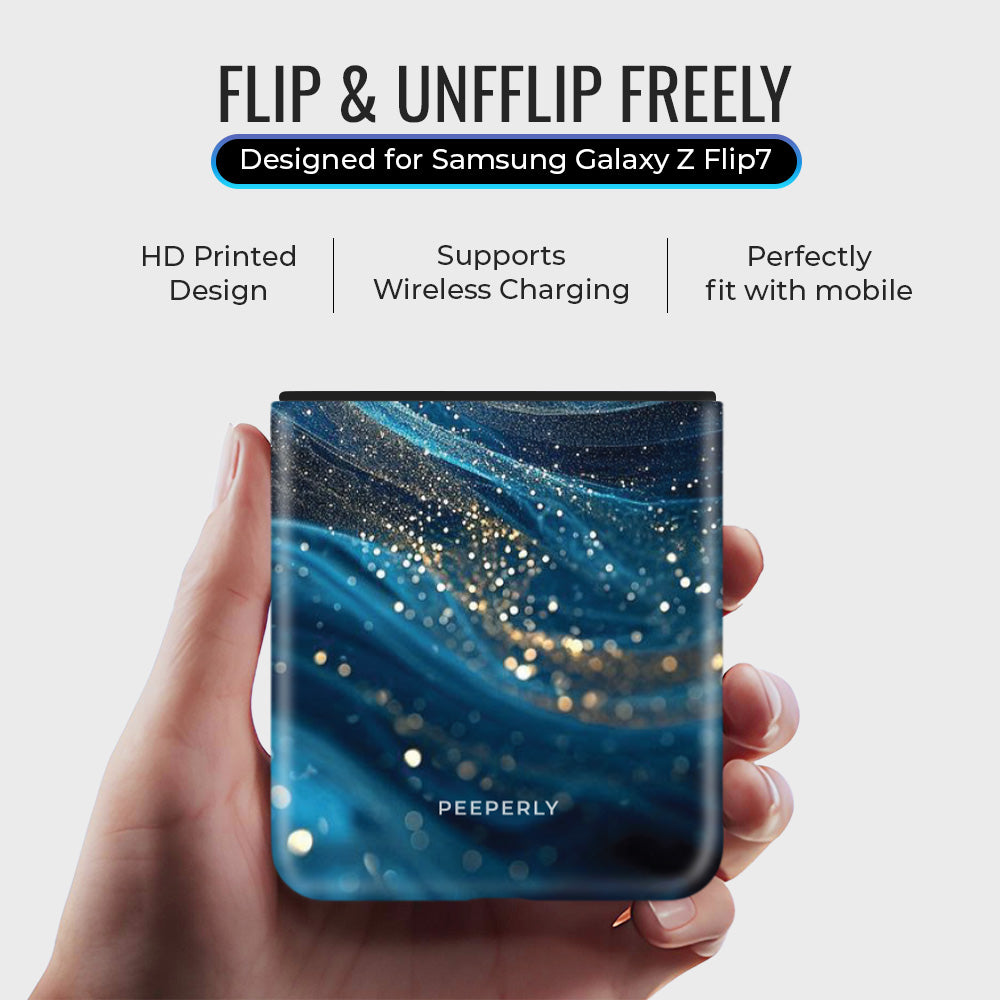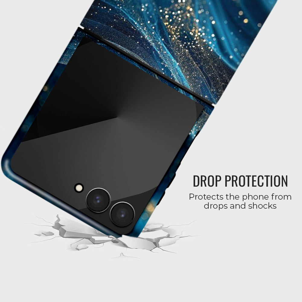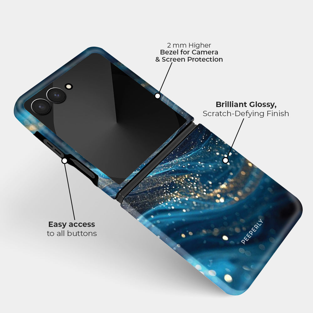 Immerse yourself in the cosmic beauty of the Celestial Tide Case — where the tranquil depths of midnight blue meet the brilliance of golden stardust. This design captures the graceful flow of celestial waves, as if the universe itself ripples across your fingertips.