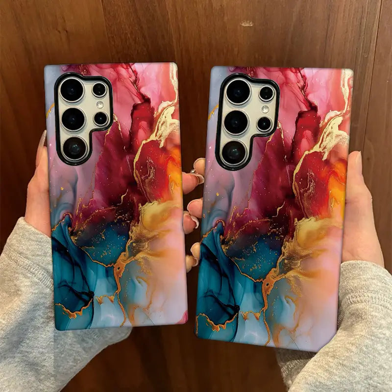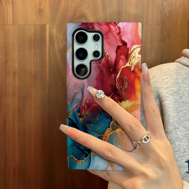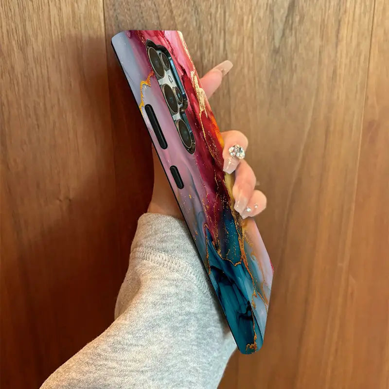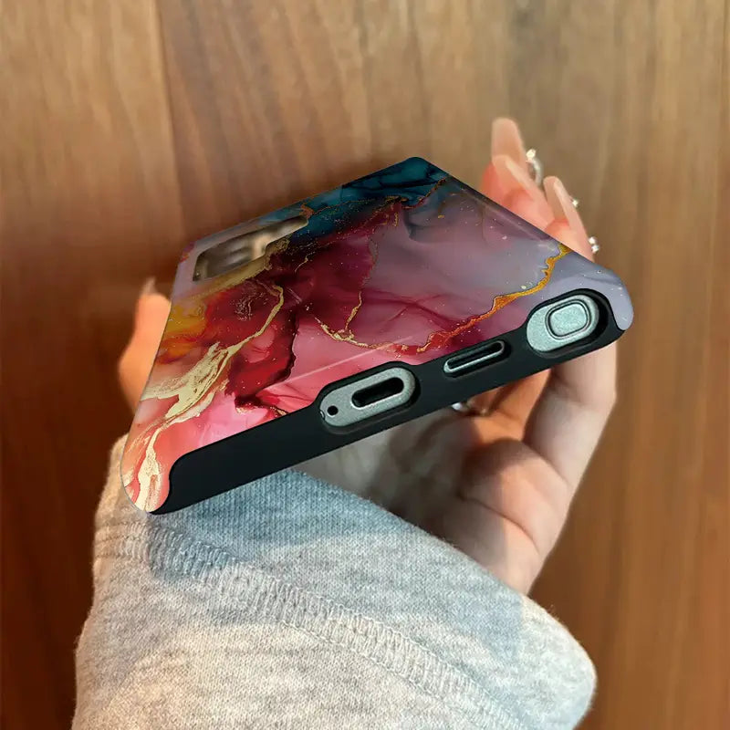 Immerse yourself in the art of color and motion with the Crimson Flow Case. This design captures the beauty of flowing hues — deep crimson, fiery gold, and serene blue — blending together like liquid art in motion.