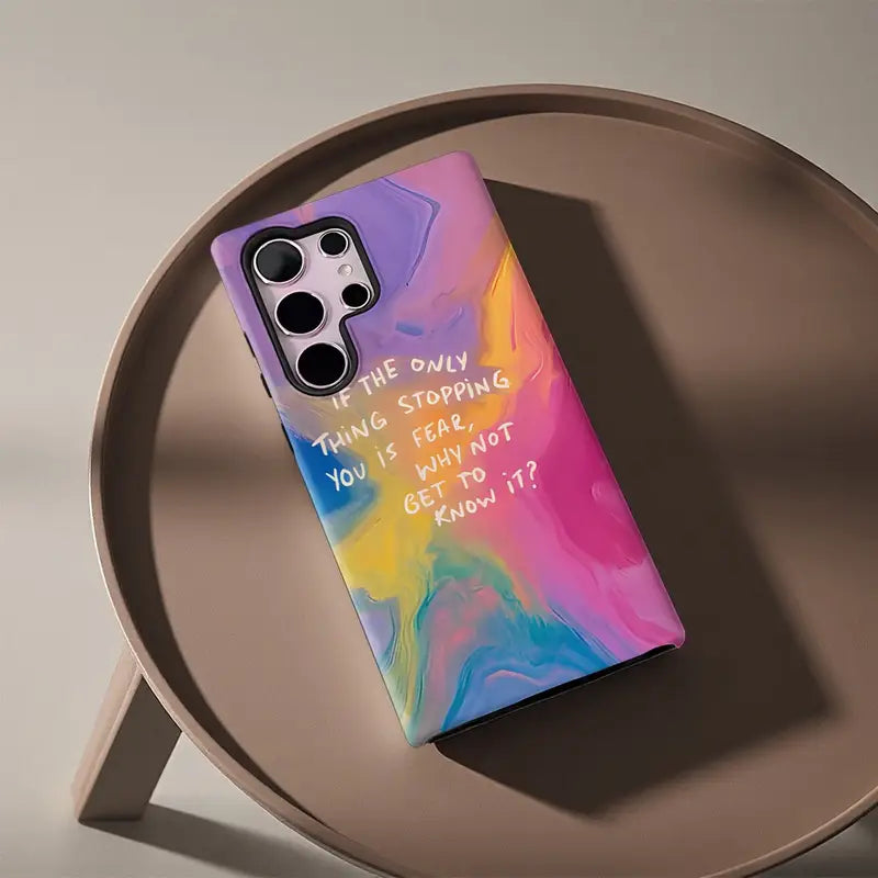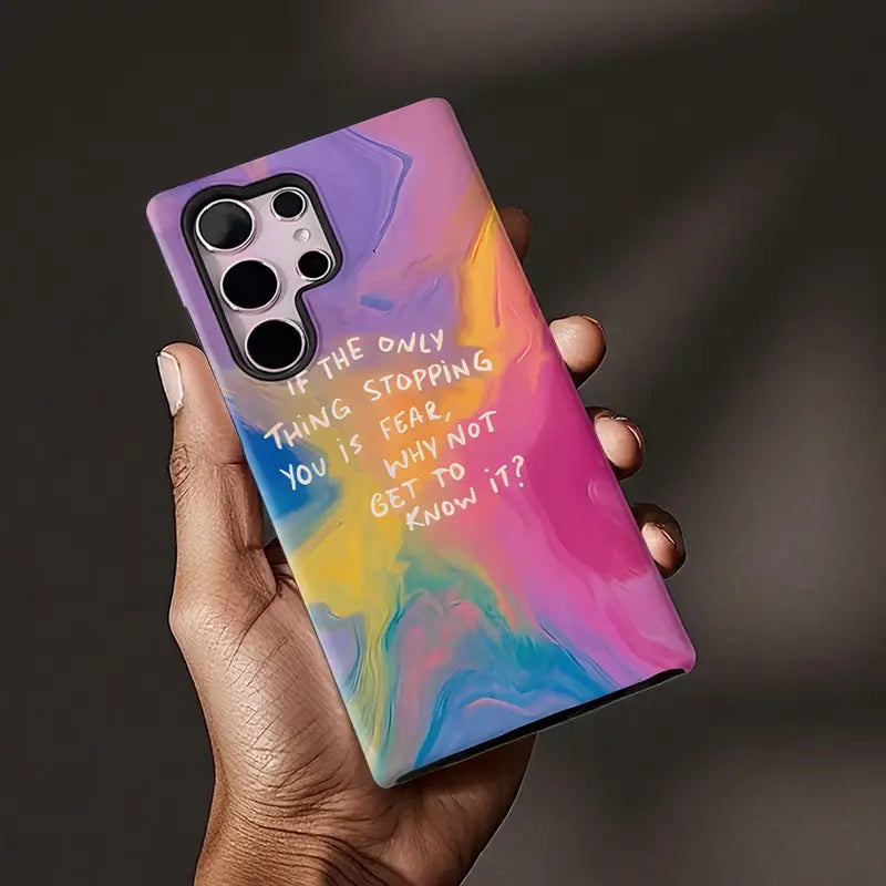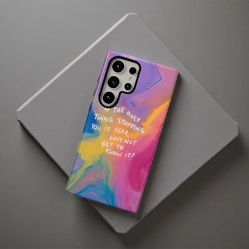 Step into courage and color with the Fearless Hue Case — a bold fusion of art and affirmation. Designed to inspire confidence every time you reach for your phone, this case radiates with vibrant swirls of pink, yellow, blue, and purple — each shade symbolizing strength, creativity, and optimism.
