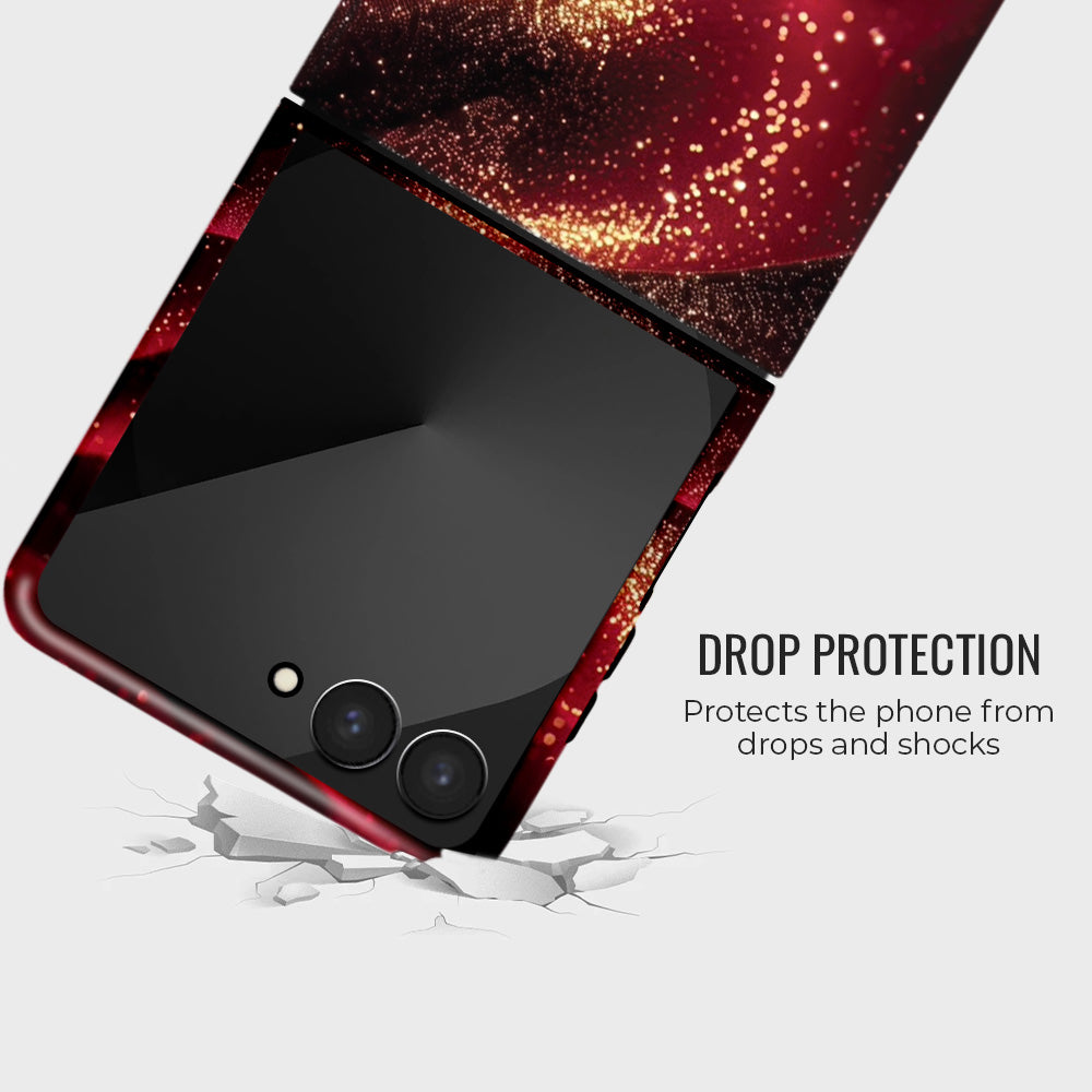 Ignite your style with the Lustrous Flame Case, a breathtaking fusion of passion and elegance. Flowing waves of deep crimson shimmer with trails of golden light, creating the illusion of molten fire captured in motion.