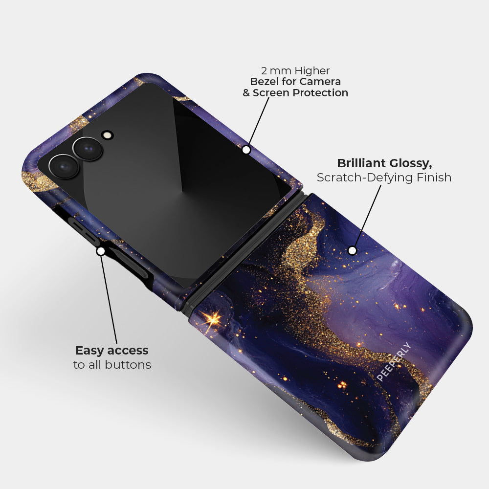 Immerse yourself in the beauty of the cosmos with the Stellar Stream Case — a masterpiece that captures the graceful flow of starlight across the night sky. Deep indigo and violet hues intertwine like galaxies in motion, while cascades of golden dust shimmer like constellations forming in the distance.
