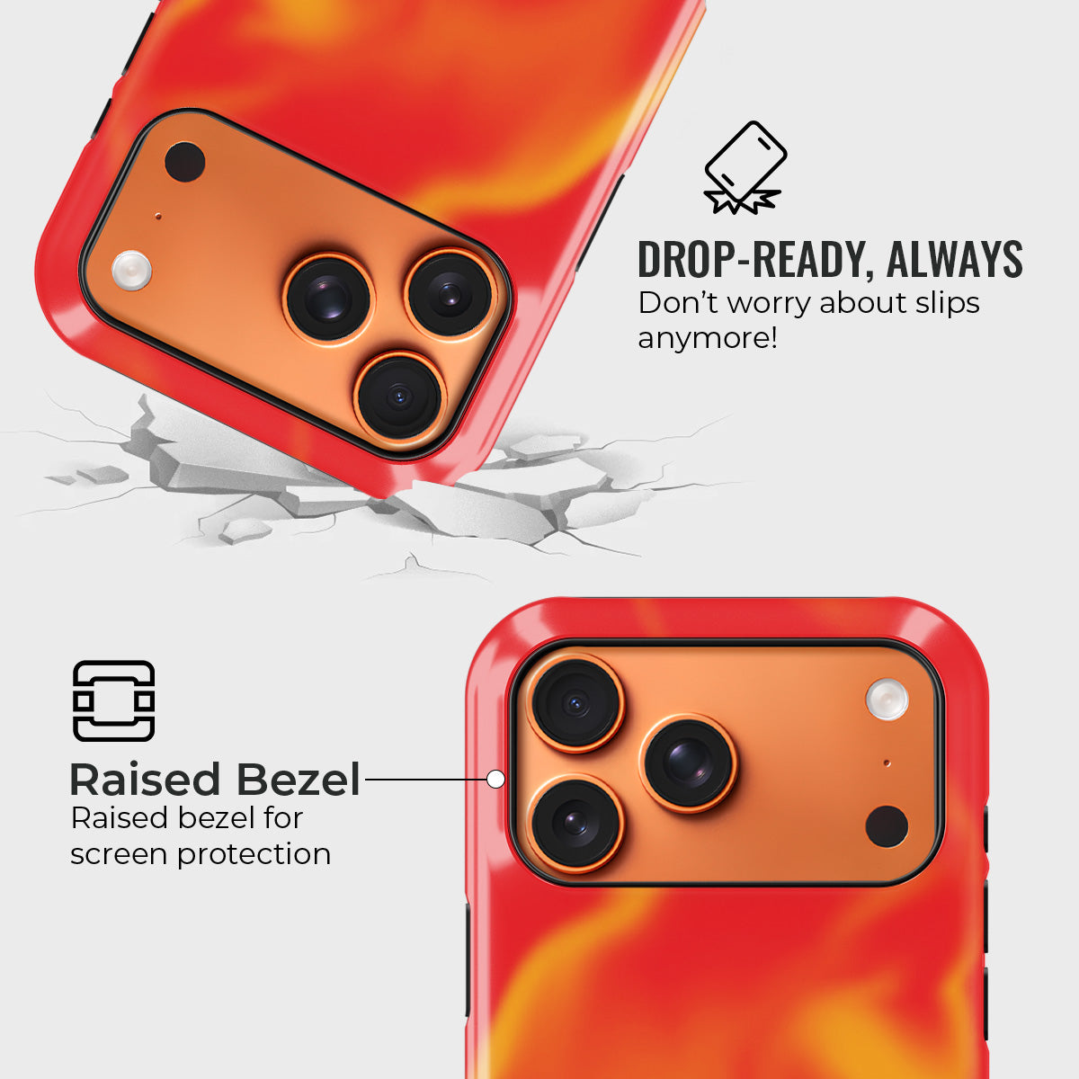 Feel the heat of pure intensity with Blaze Core, a design that embodies the untamed energy of molten fire. This case radiates with swirling tones of crimson and gold, capturing the moment when flame and passion collide.