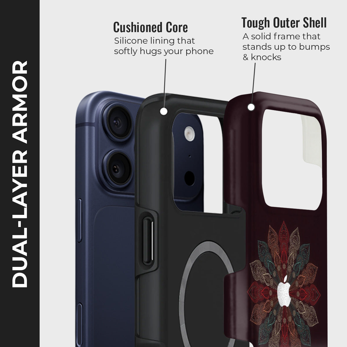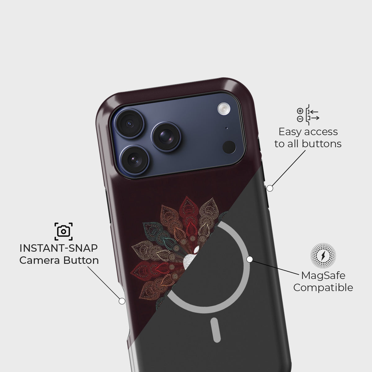 Rooted in elegance and inspired by sacred artistry, Crimson Mandala blends timeless design with modern sophistication. The intricate mandala pattern unfolds in rich hues of crimson, bronze, and teal — symbolizing balance, creativity, and harmony.