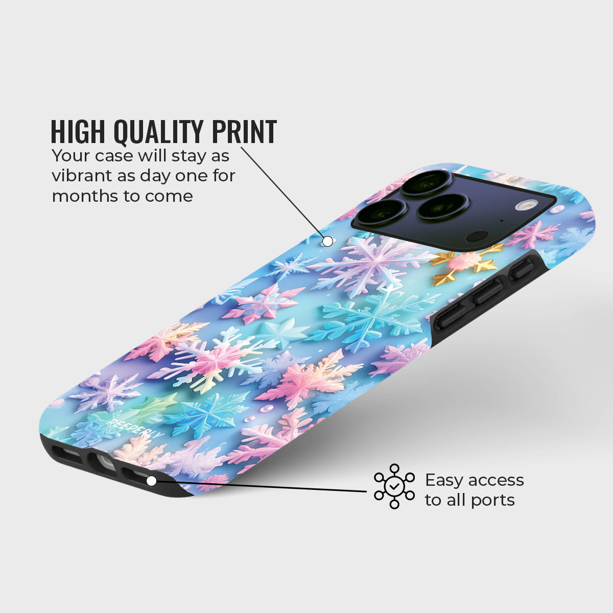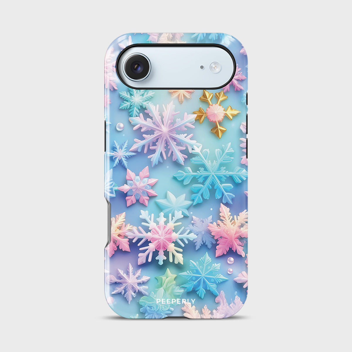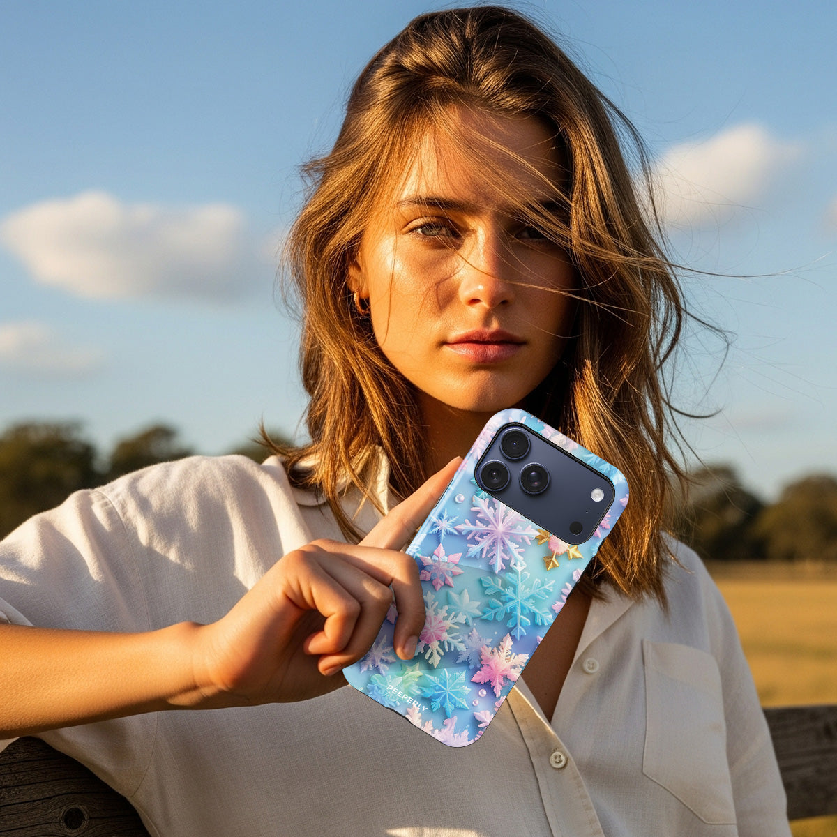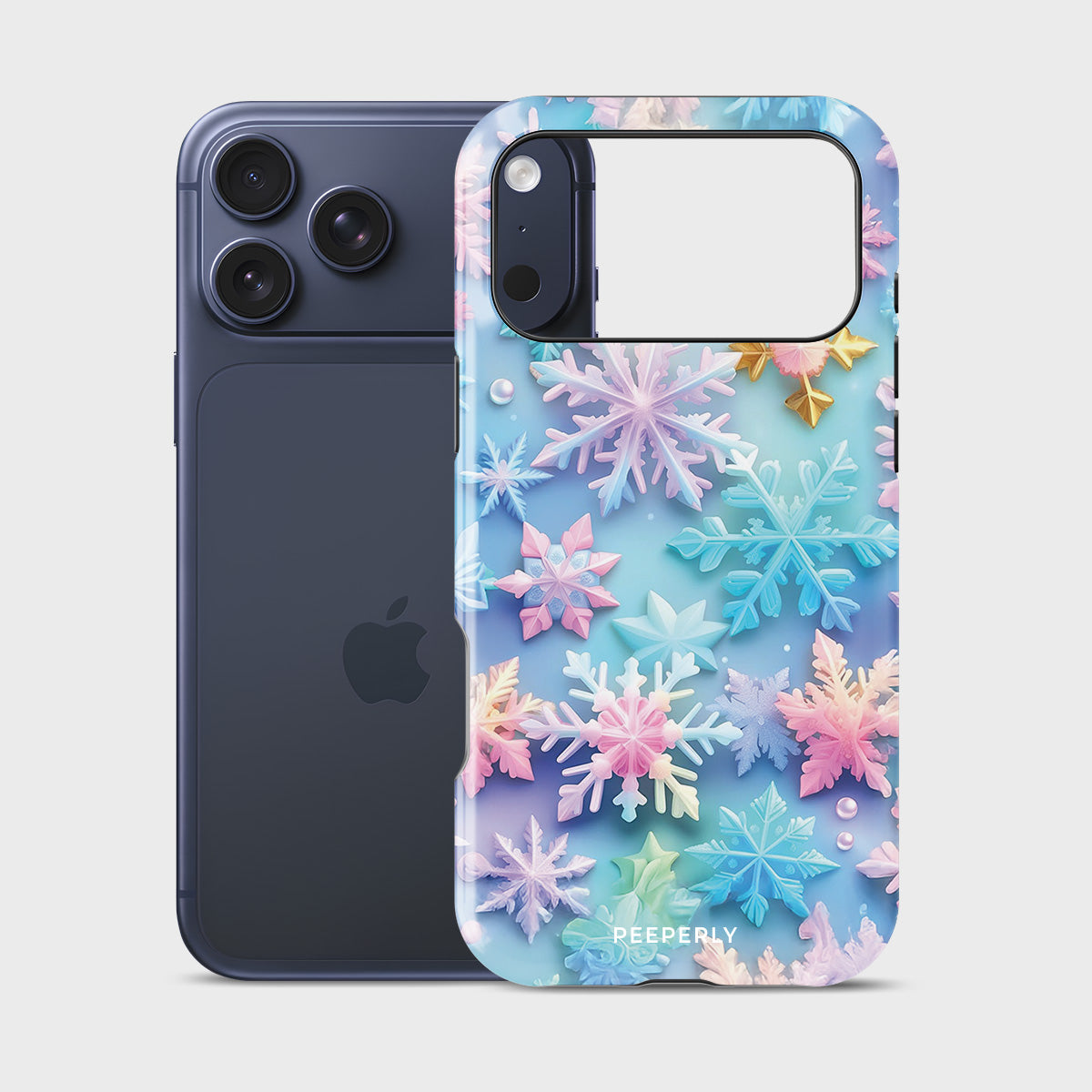 Step into a world of winter elegance with the Icy Bloom Case — where delicate artistry meets cool sophistication. Inspired by glistening snowflakes and soft pastel hues, this case captures the serene beauty of a frozen wonderland.