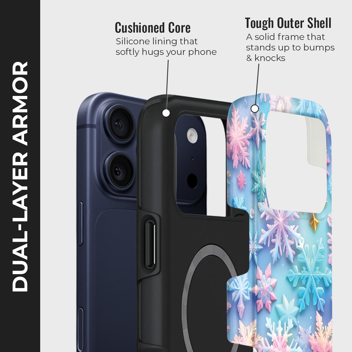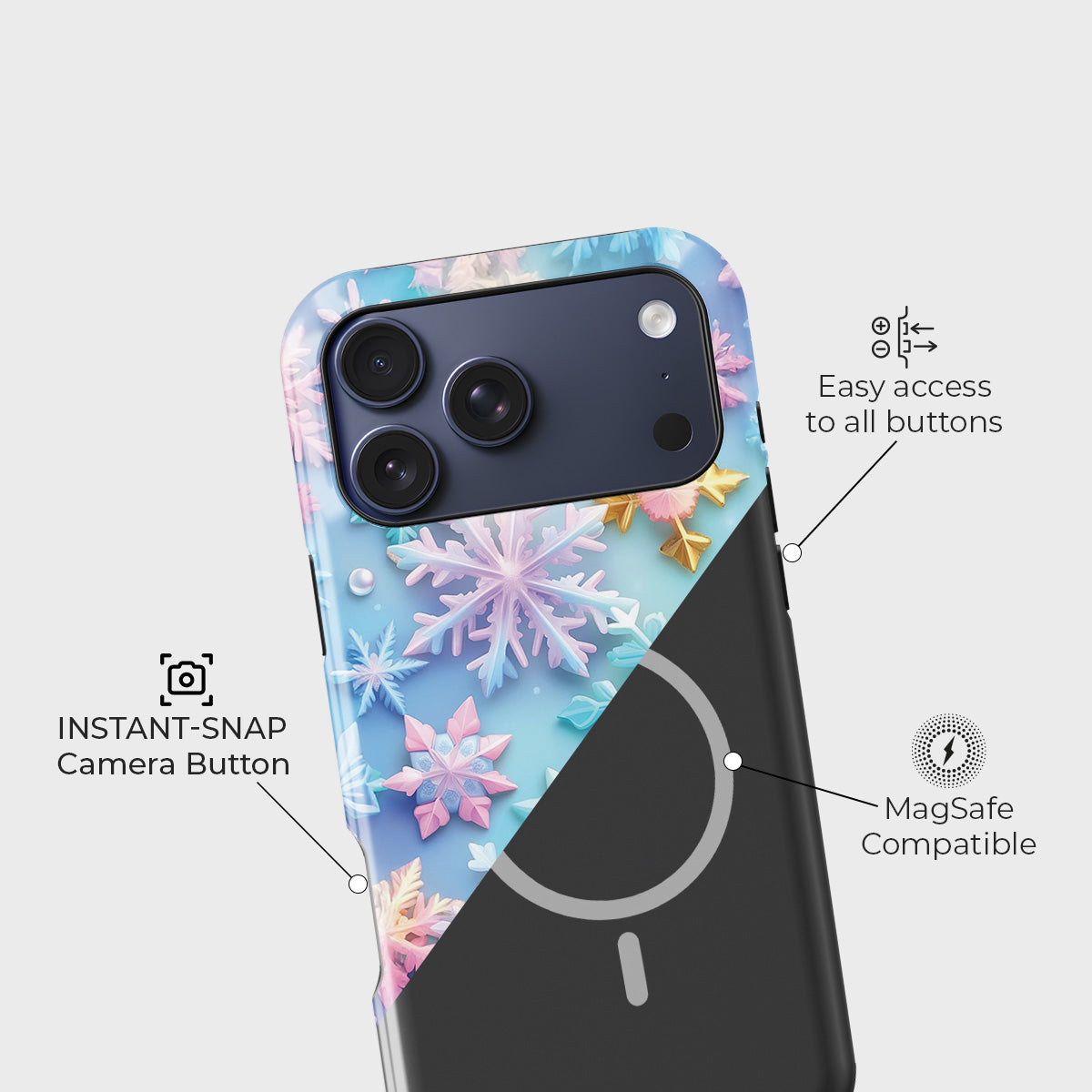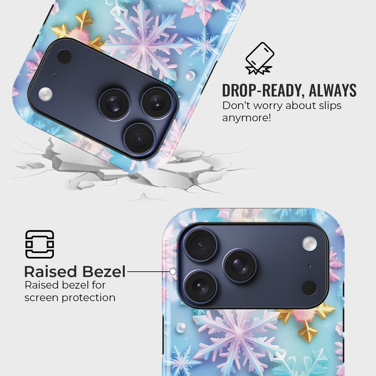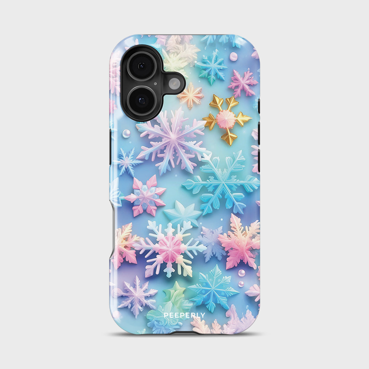 Step into a world of winter elegance with the Icy Bloom Case — where delicate artistry meets cool sophistication. Inspired by glistening snowflakes and soft pastel hues, this case captures the serene beauty of a frozen wonderland.
