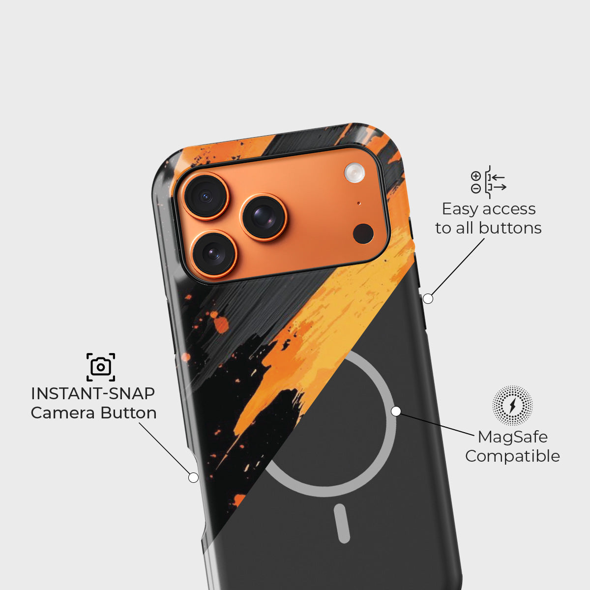 Unleash your boldest energy with Inferno Streak, a design that captures the raw motion of fire meeting shadow. With its dynamic brushstroke pattern in blazing orange and deep black, this case is a statement of passion, strength, and creativity — made for those who thrive on intensity and self-expression.
