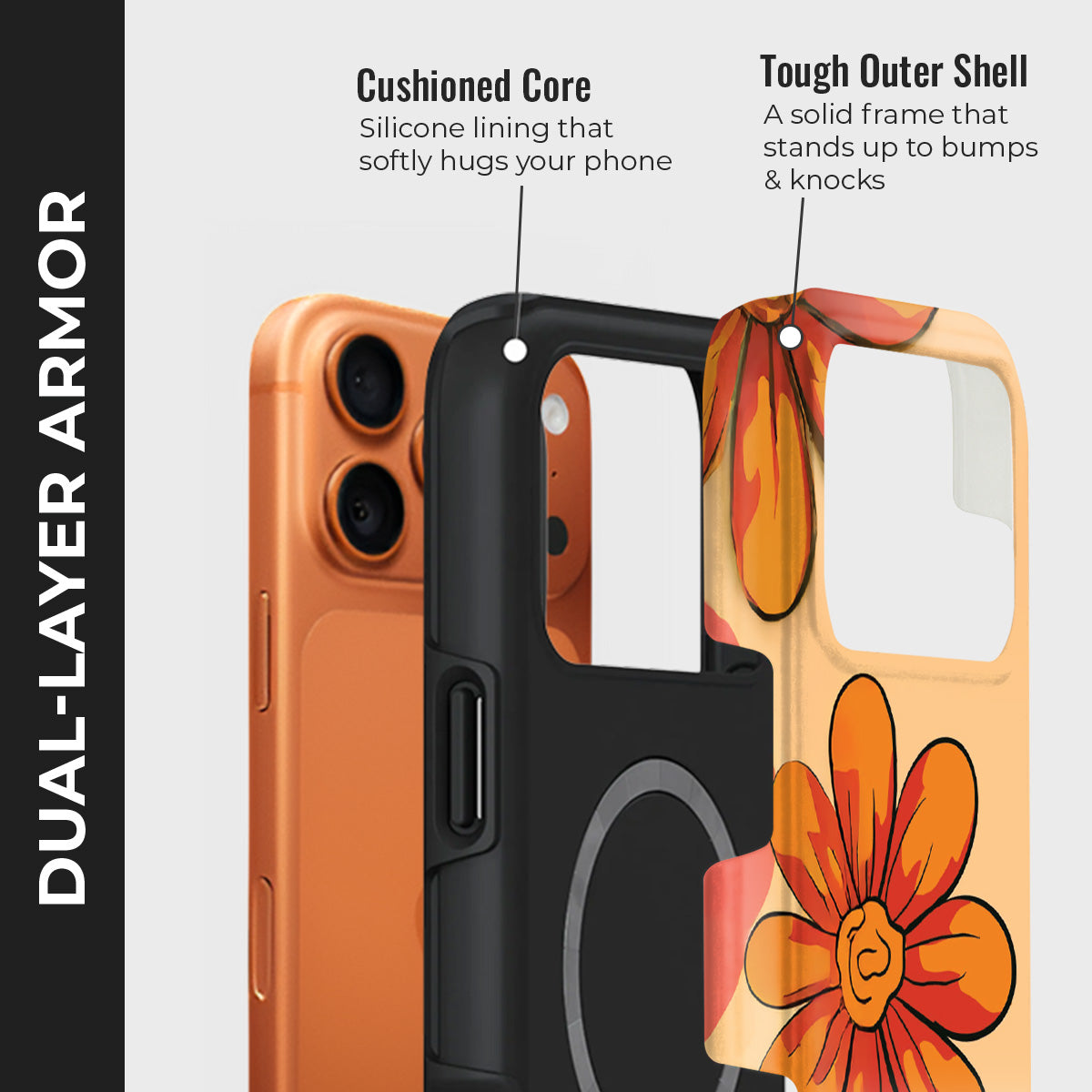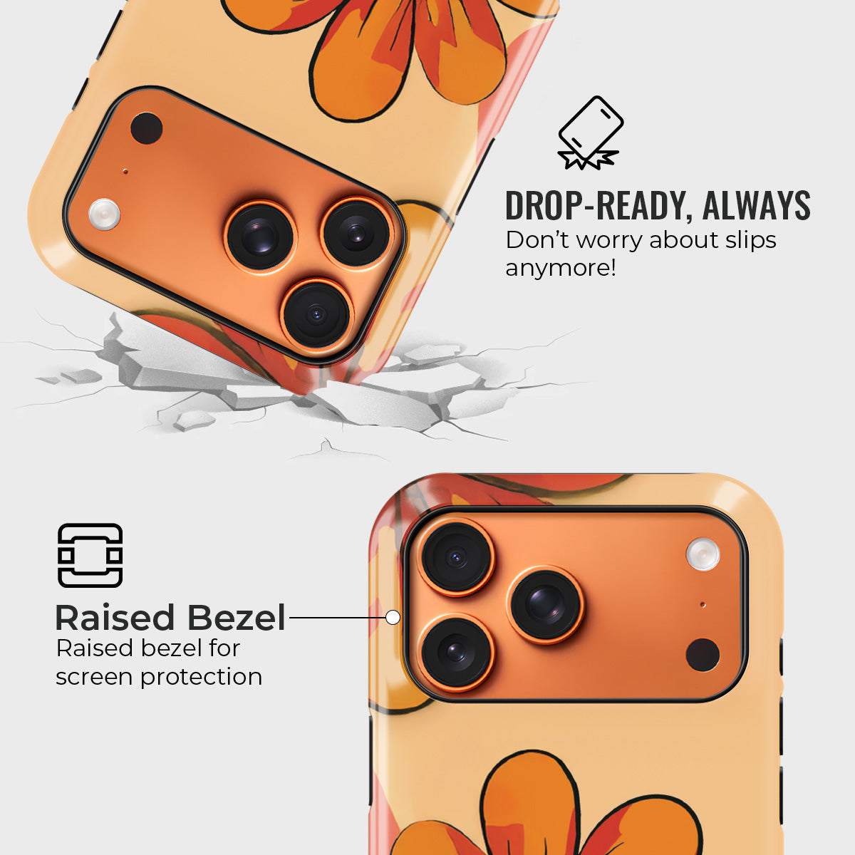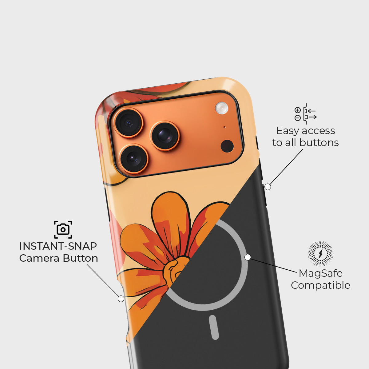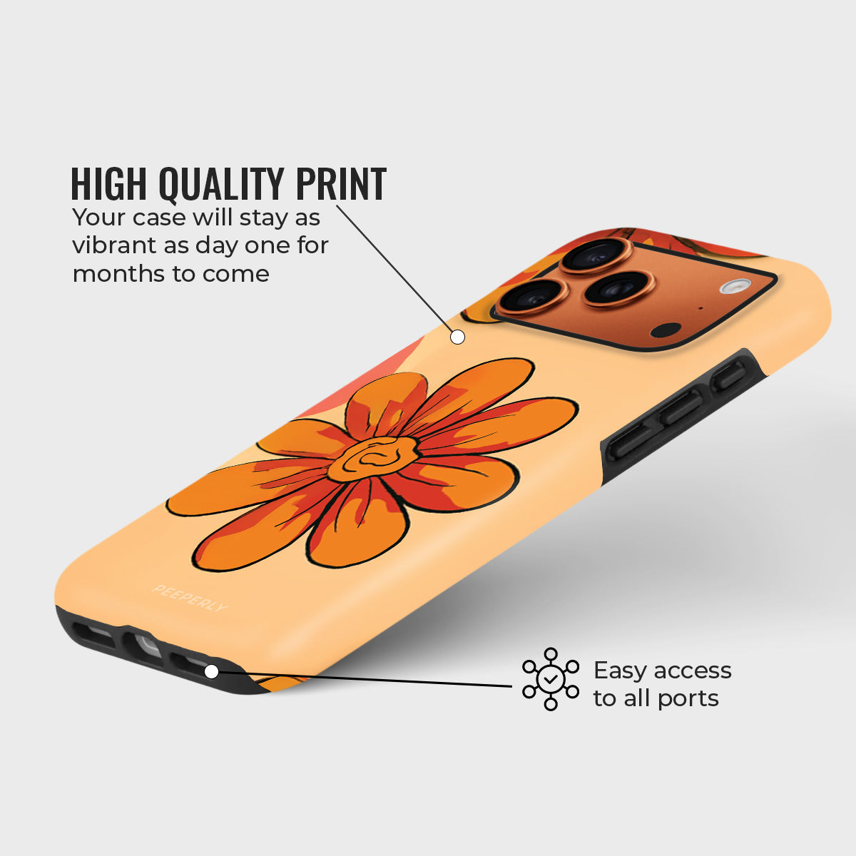 Bright, bold, and irresistibly cheerful — Marigold Muse is a celebration of warmth and creativity. Featuring a vivid orange flower blooming across a soft golden backdrop, this case radiates positivity and charm with every glance.