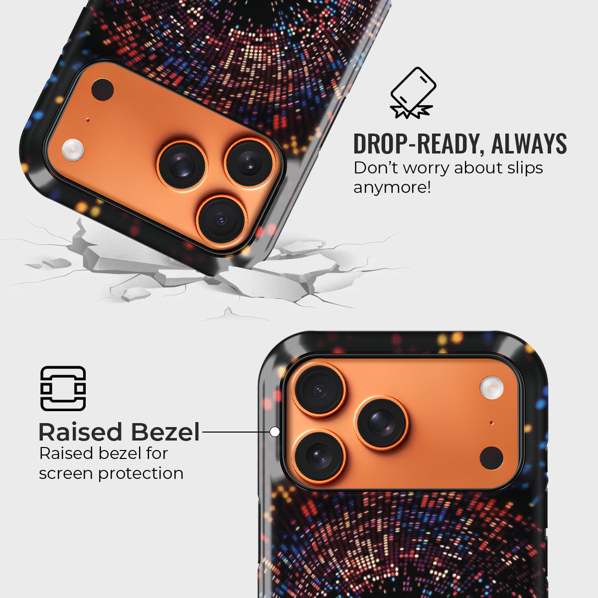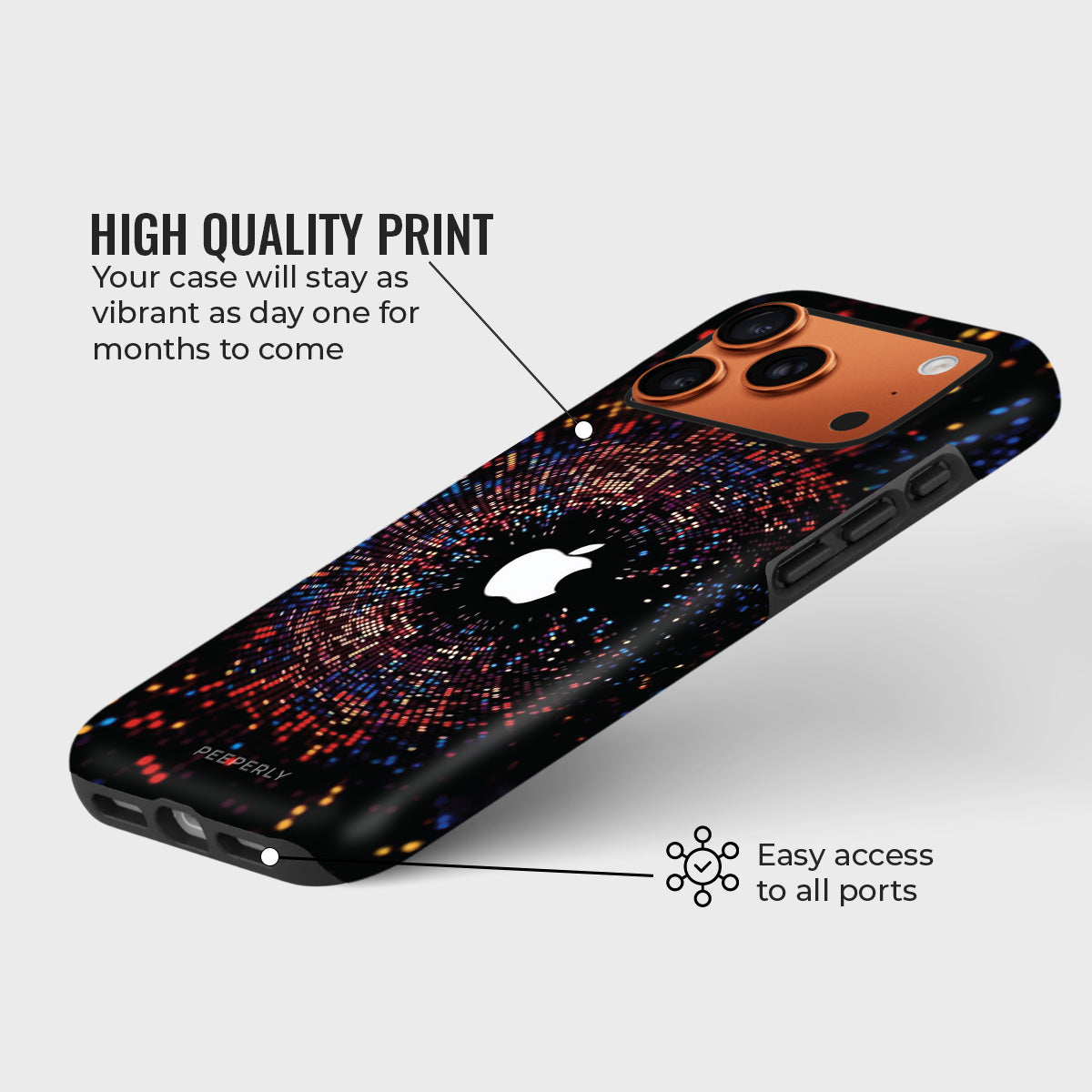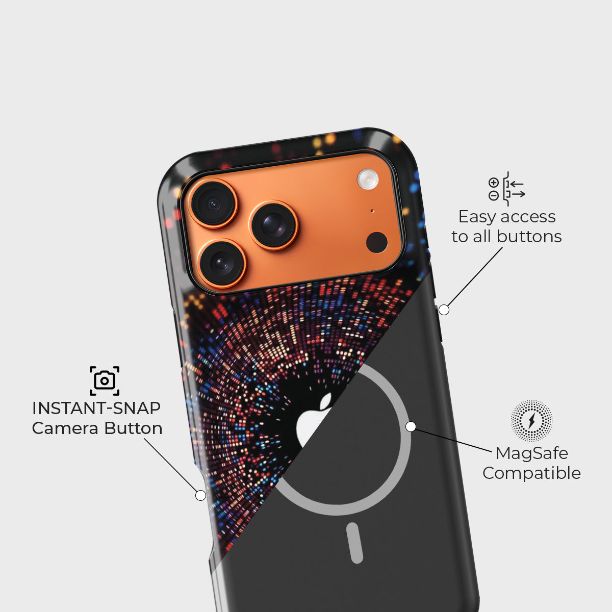 Step into the future of design with Quantum Spin, a masterpiece of motion, light, and precision. This case captures the mesmerizing rhythm of energy in motion — a swirling galaxy of color that radiates from the core, representing the pulse of innovation and life itself.