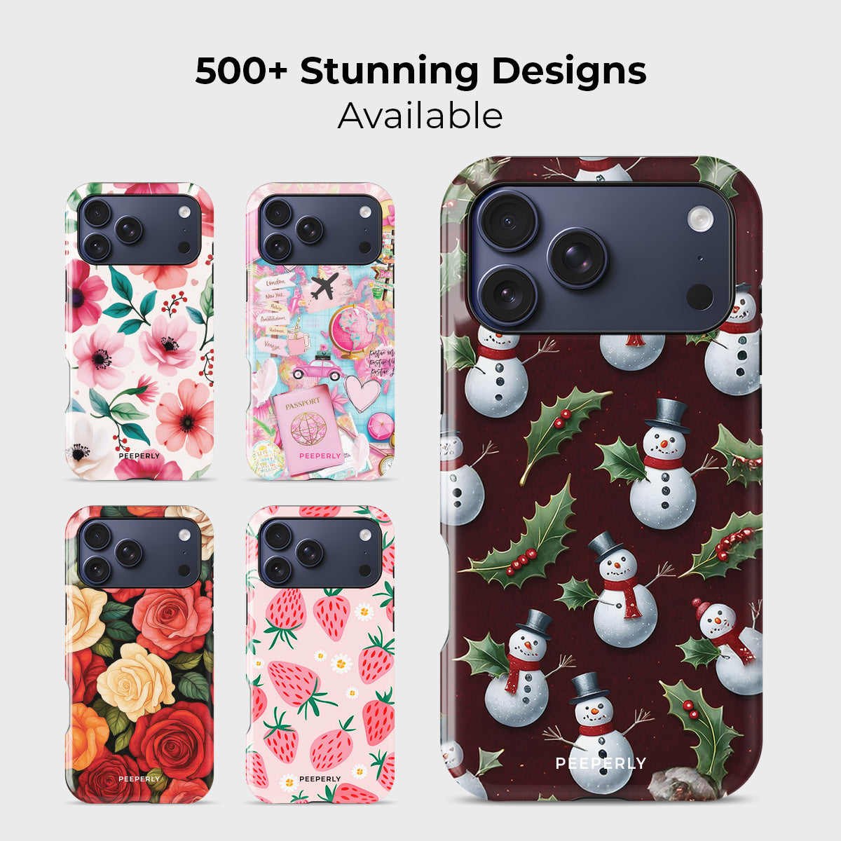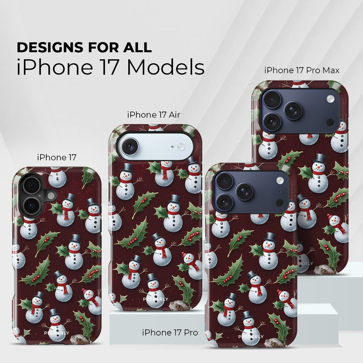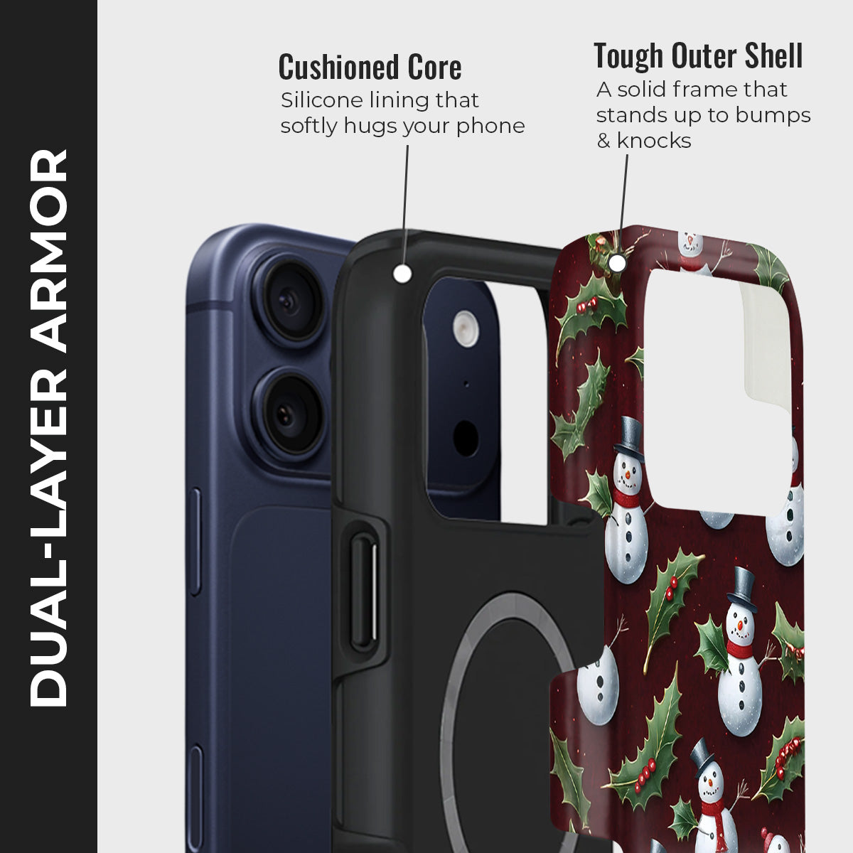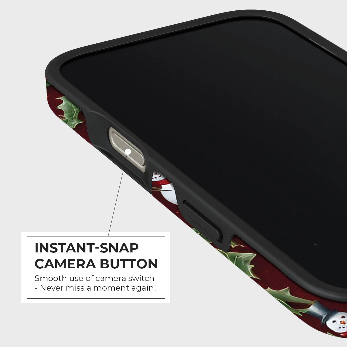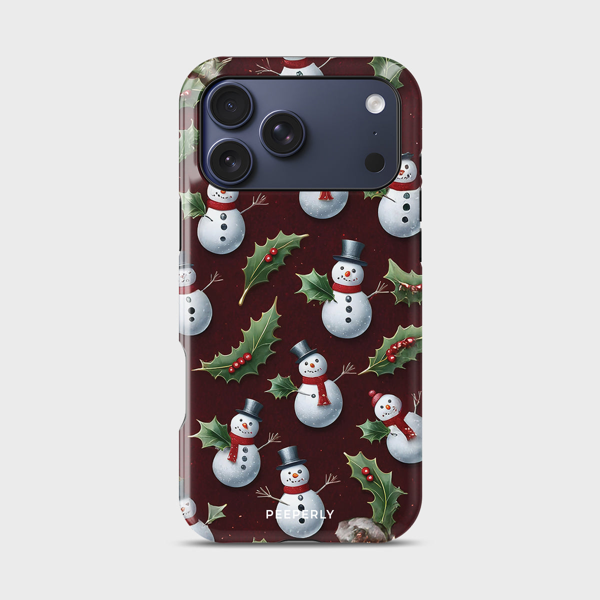 Wrap your phone in the magic of winter with Snowman Delight — a charming case that captures the joy and coziness of the holiday season. Adorned with cheerful snowmen, festive holly leaves, and a deep crimson background, this case brings warmth and wonder to every glance.