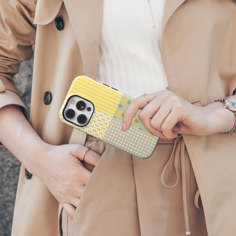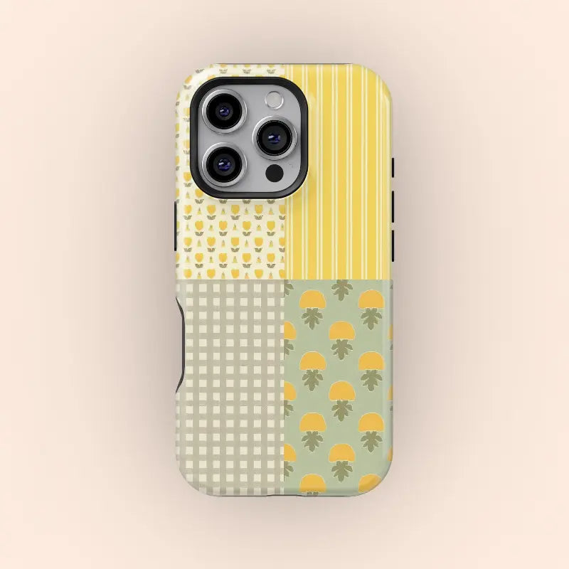 Sunny Patch brings together a playful mix of lemon motifs, gentle stripes, and textured grids in a bright patchwork design. Warm yellows and soft neutrals blend seamlessly, creating a look that feels light, happy, and comforting—like sunshine filtering through a kitchen window.