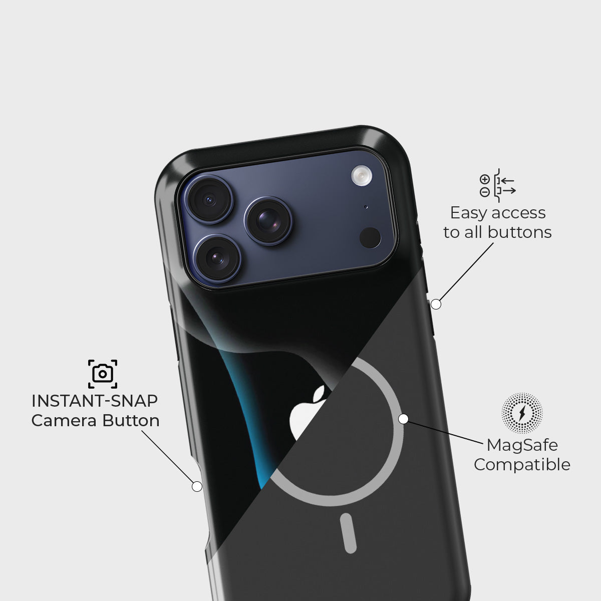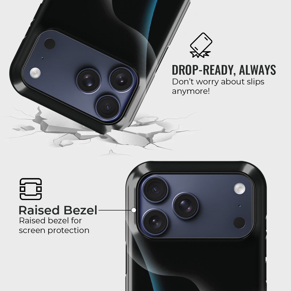 Dive into refined darkness with Abyss Veil, a phone case that embodies quiet power and elegant mystery. Its fluid black design flows with deep blue undertones, creating an illusion of light emerging from the shadows.