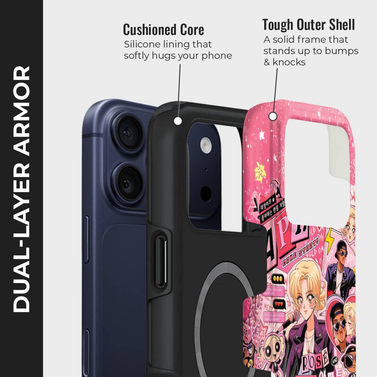 • Double-Layer Protection: Silicon interior cushions impacts + rigid PC exterior shields against drops and scratches.