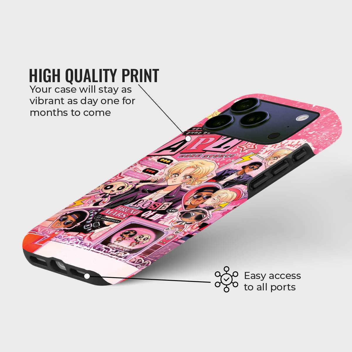 Bring your love for bold colors, lively characters, and energetic vibes to life with Anime Craze. This phone case bursts with anime-inspired art, playful graphics, and music-stage flair, making it the ultimate statement piece for fans of vibrant creativity. Perfect for showcasing your passion while keeping your phone protected in standout style.