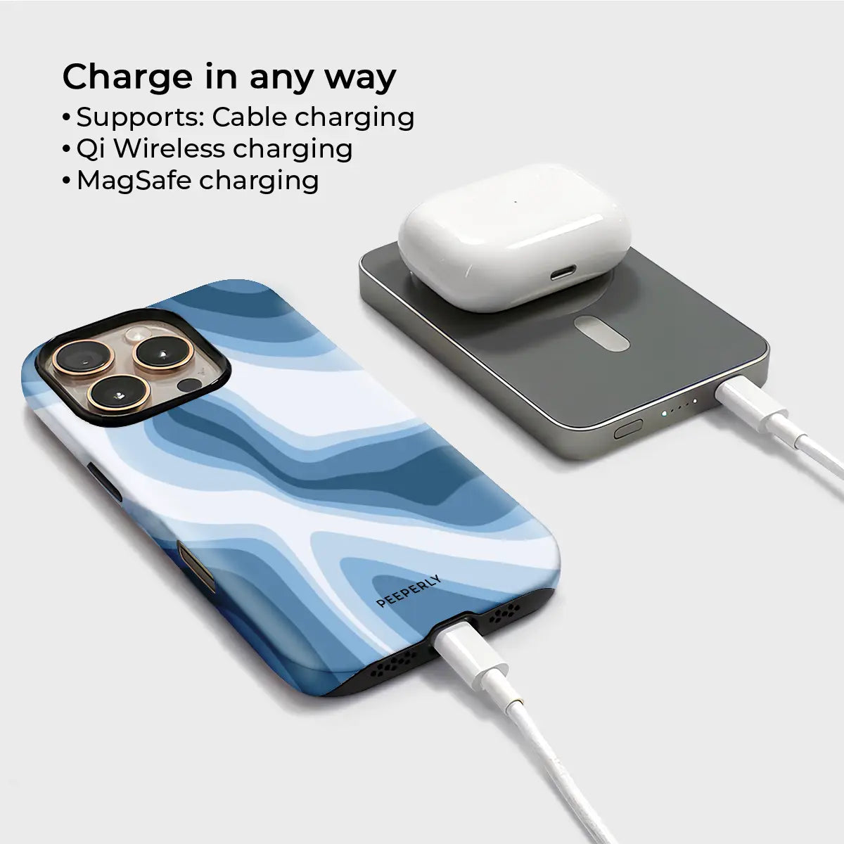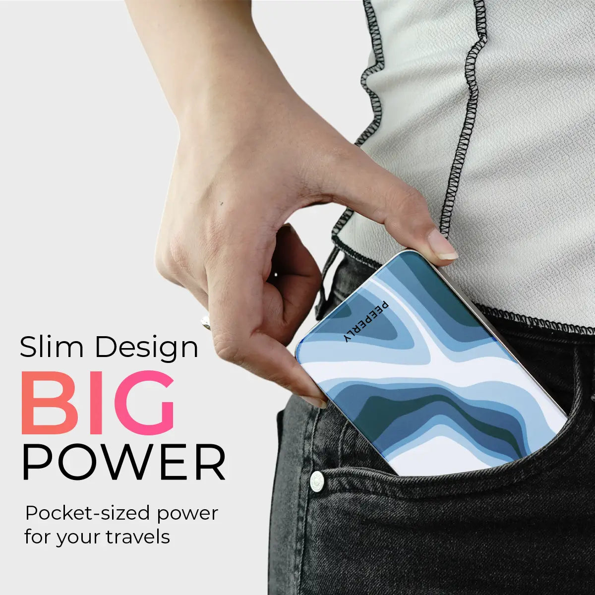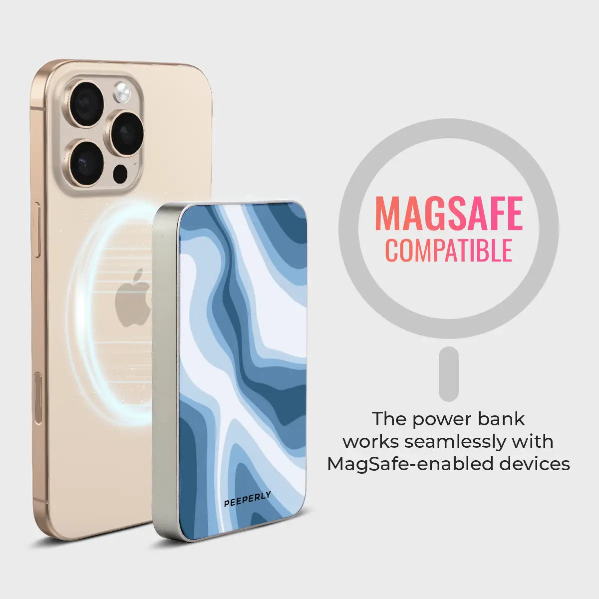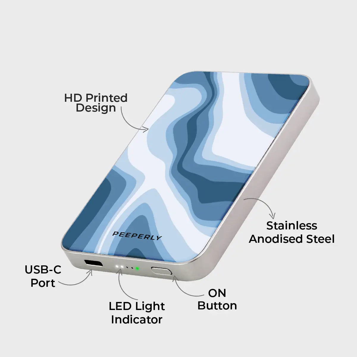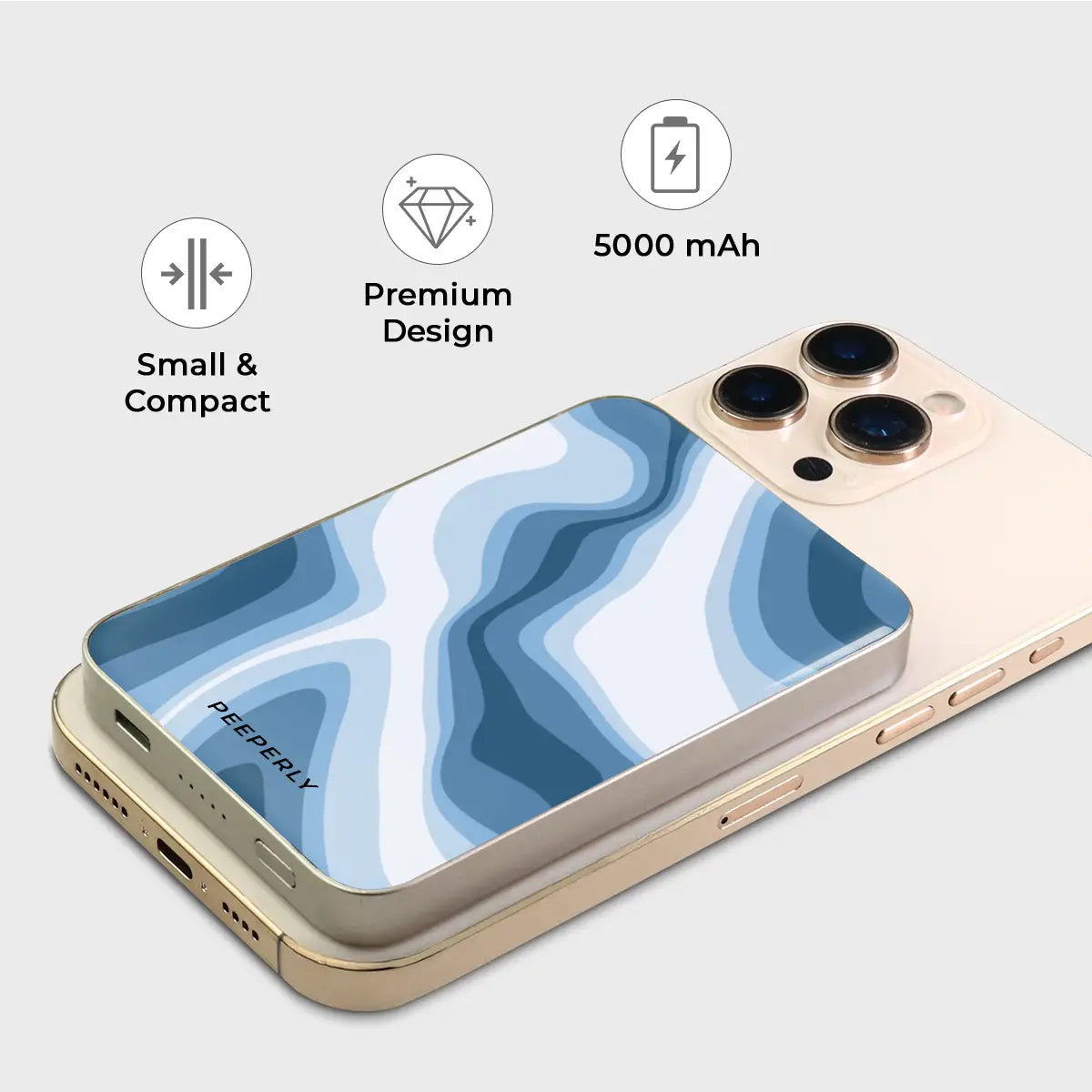 Built with strong magnetic snap-on charging for seamless everyday use, this slim and lightweight power bank blends soothing aesthetics with reliable performance. Azure Drift is perfect for those who love clean design, cool tones, and understated elegance.