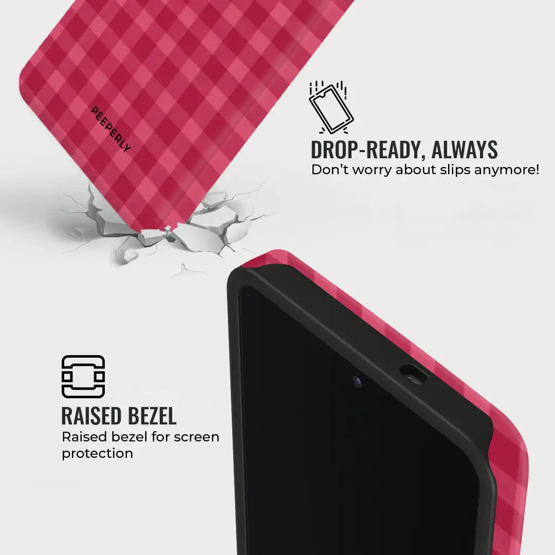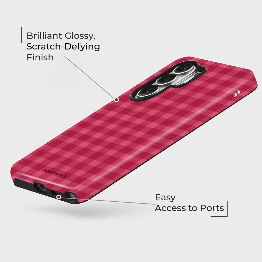 Sweet meets sophisticated with the Berry Gingham Case. Designed in a rich berry-red tone with a classic gingham pattern, this case adds timeless charm to your everyday style. The soft matte finish feels smooth in hand while the precise fit keeps your phone protected without adding bulk.