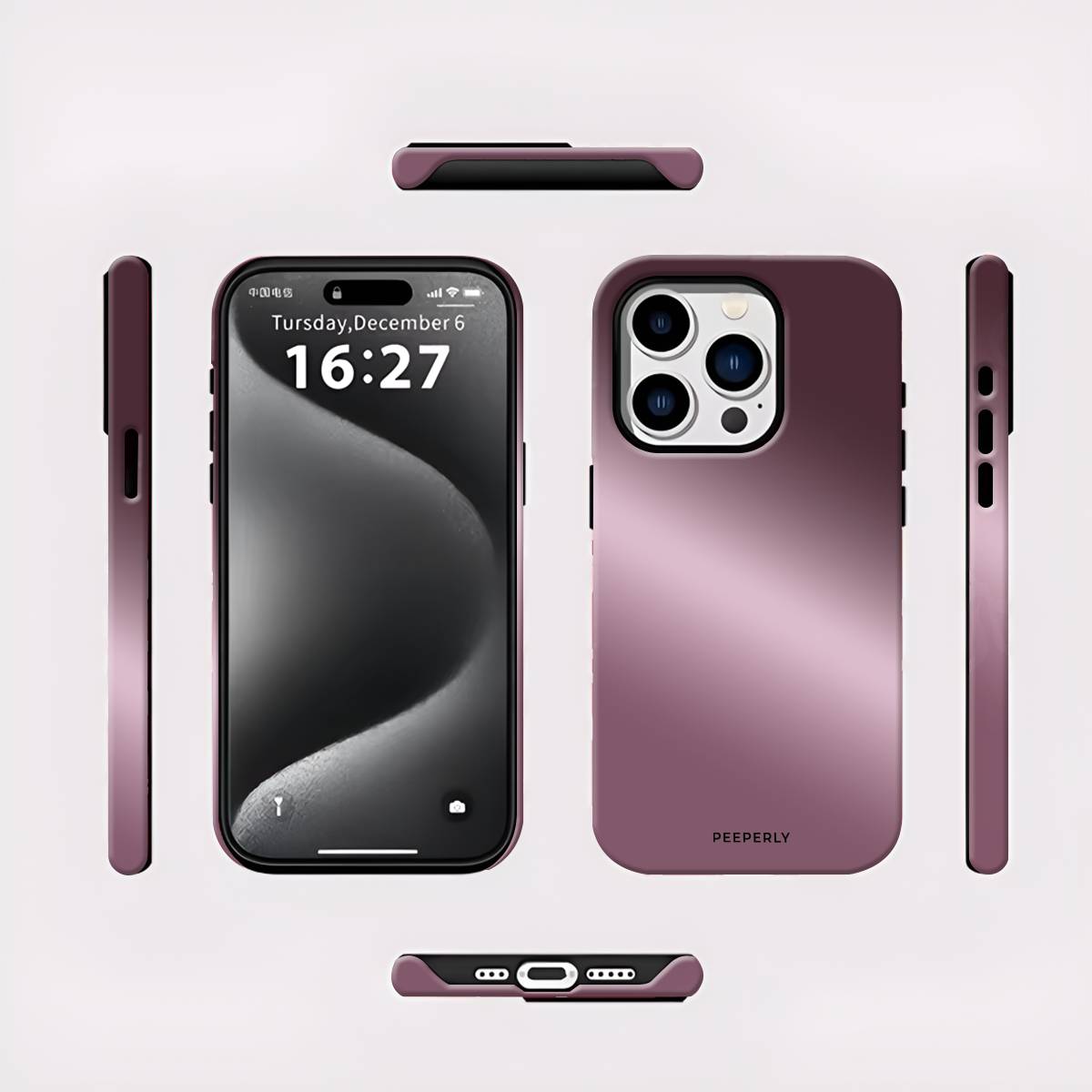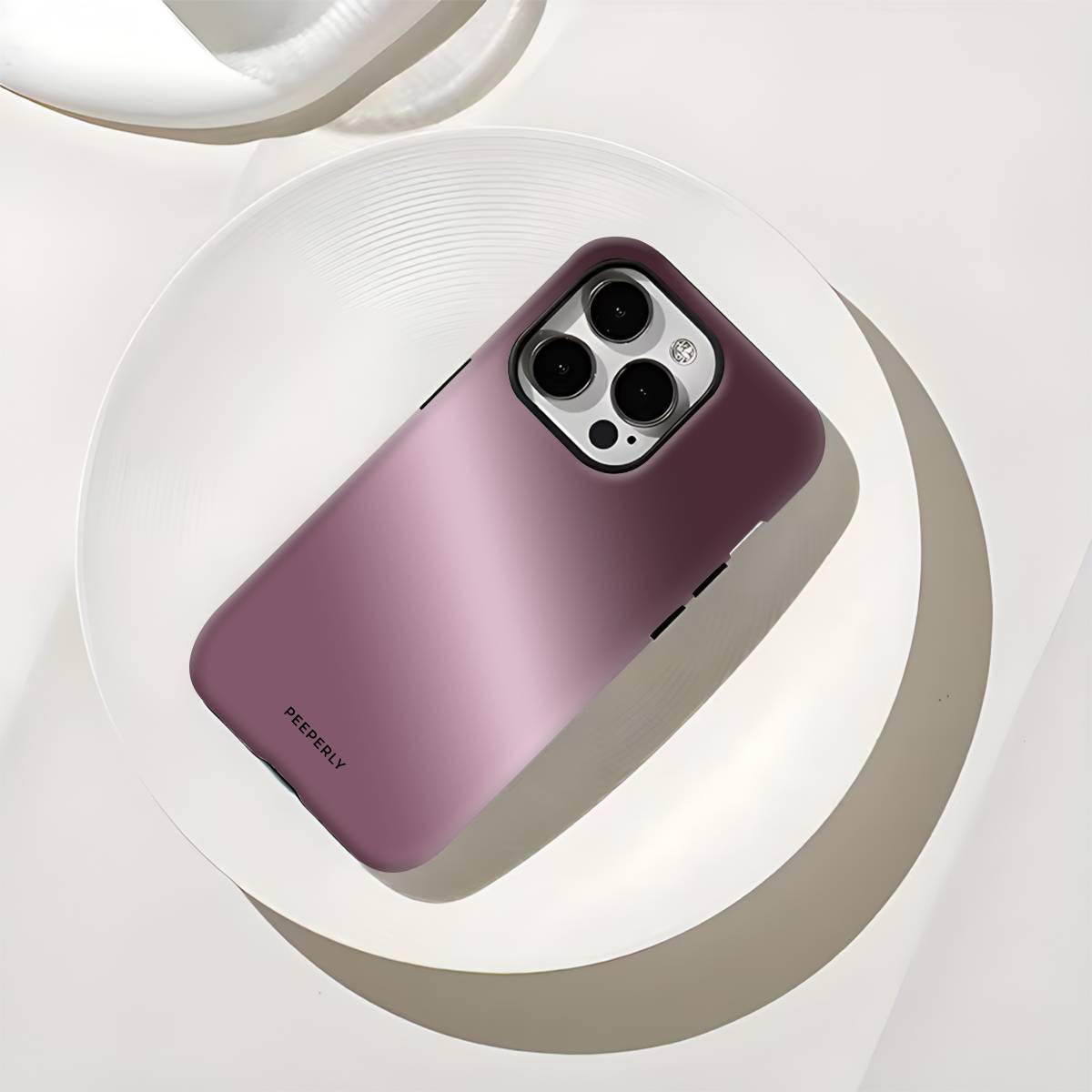 Sophisticated shine meets everyday protection. The Berry Quartz Case wraps your phone in a jewel-tone gradient—rich berry fading to soft plum—with a mirror-gloss finish that catches the light like polished quartz. A clean center emblem and slim, clear edges keep the look minimal and refined.
