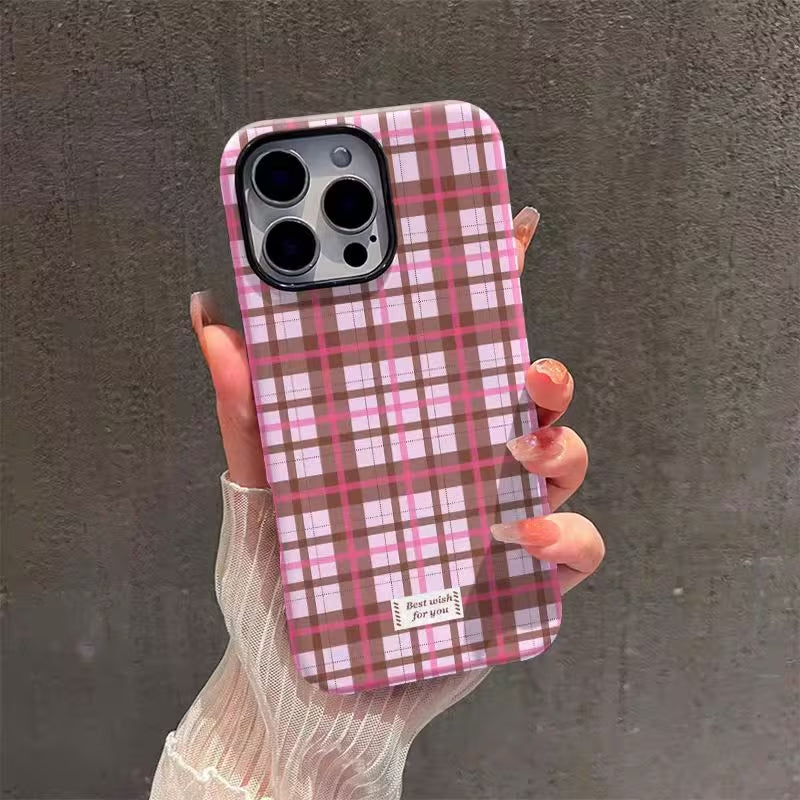 Designed with a soft pink plaid pattern and finished with a delicate “Best Wishes” label, this phone case brings a sense of warmth and gentle charm to your everyday life. The classic plaid design feels timeless yet sweet, making it perfect for those who love cozy, aesthetic styles.