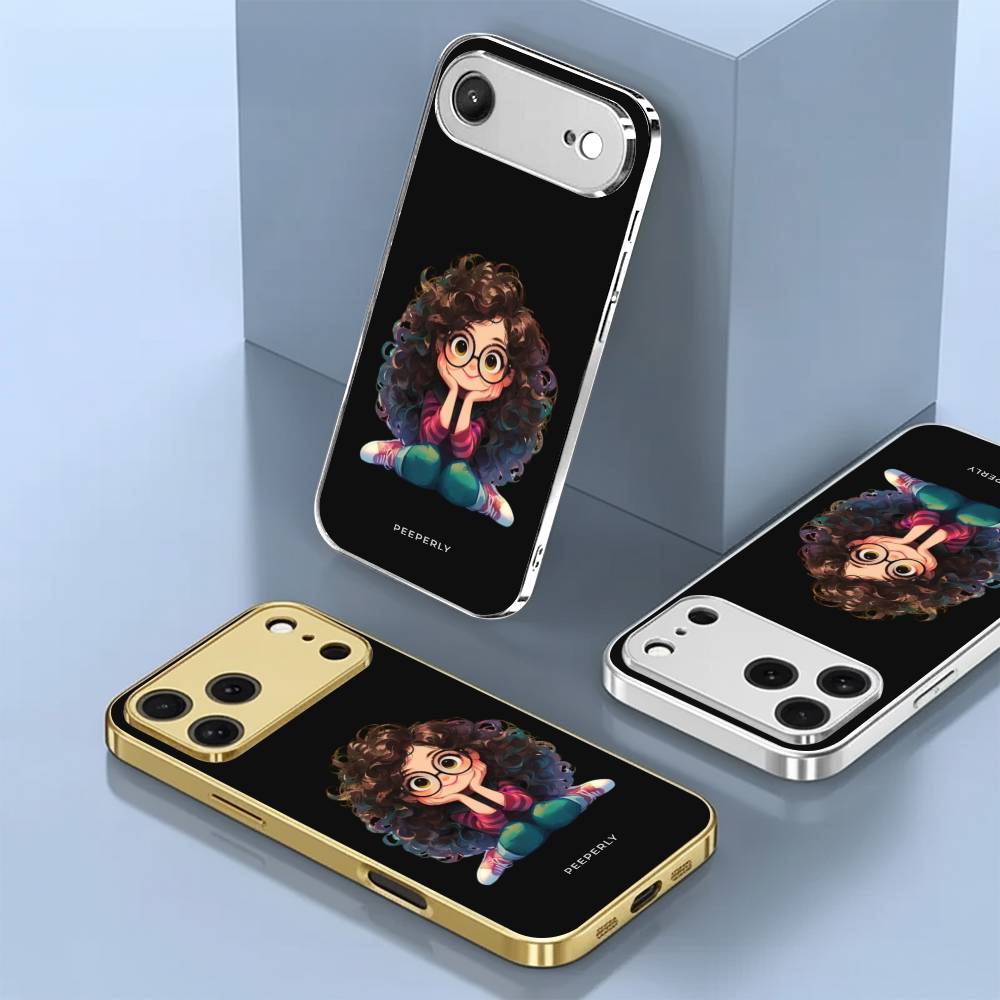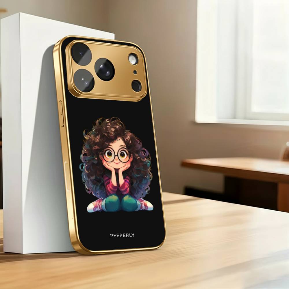 The Cozy Curls Case is a heart-stealing blend of charm, warmth, and personality. Featuring an adorable character illustration with voluminous curly hair, bright expressive eyes, and a relaxed, playful pose, this design instantly brings joy to anyone who sees it.