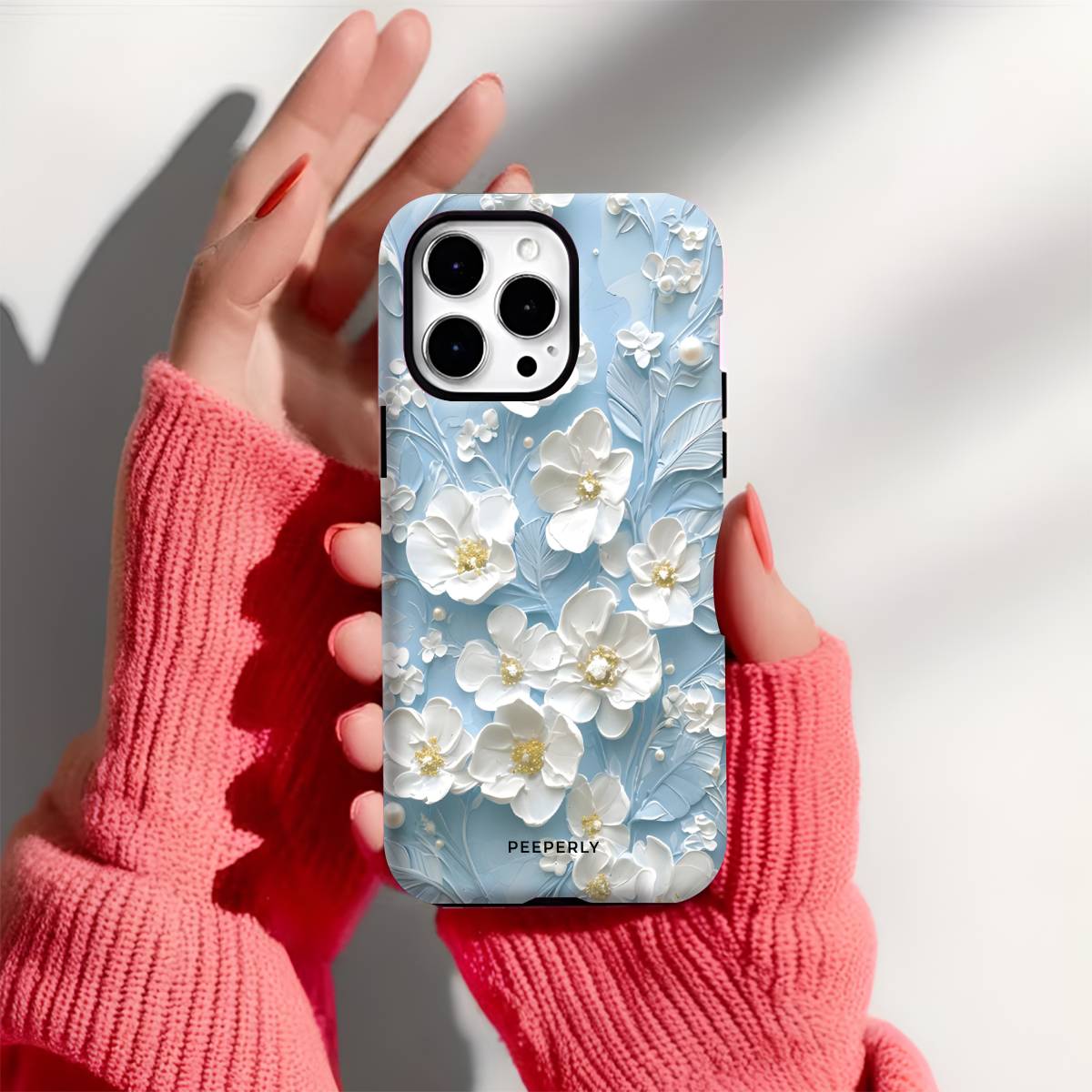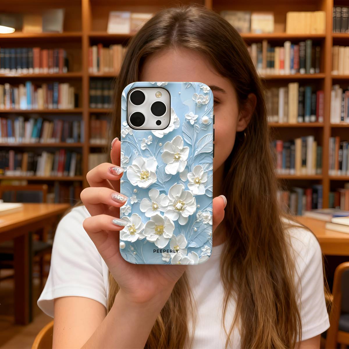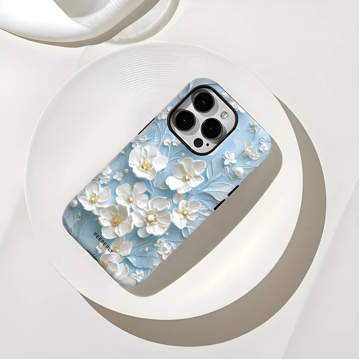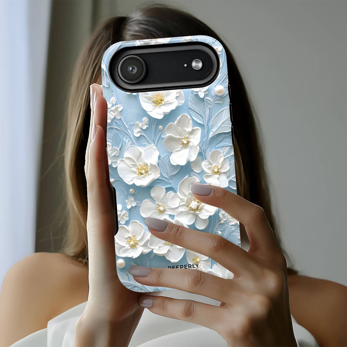 Embrace the beauty of nature’s elegance with the Blossom Grace Case — a stunning design that brings a touch of serenity and sophistication to your everyday style. Featuring delicately detailed white blossoms set against a soft blue background, this case captures the essence of grace, freshness, and timeless charm.