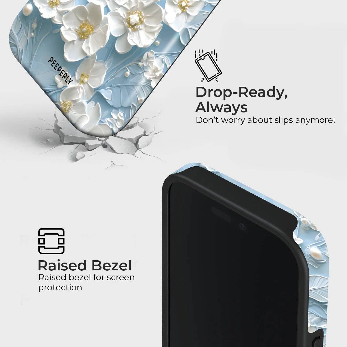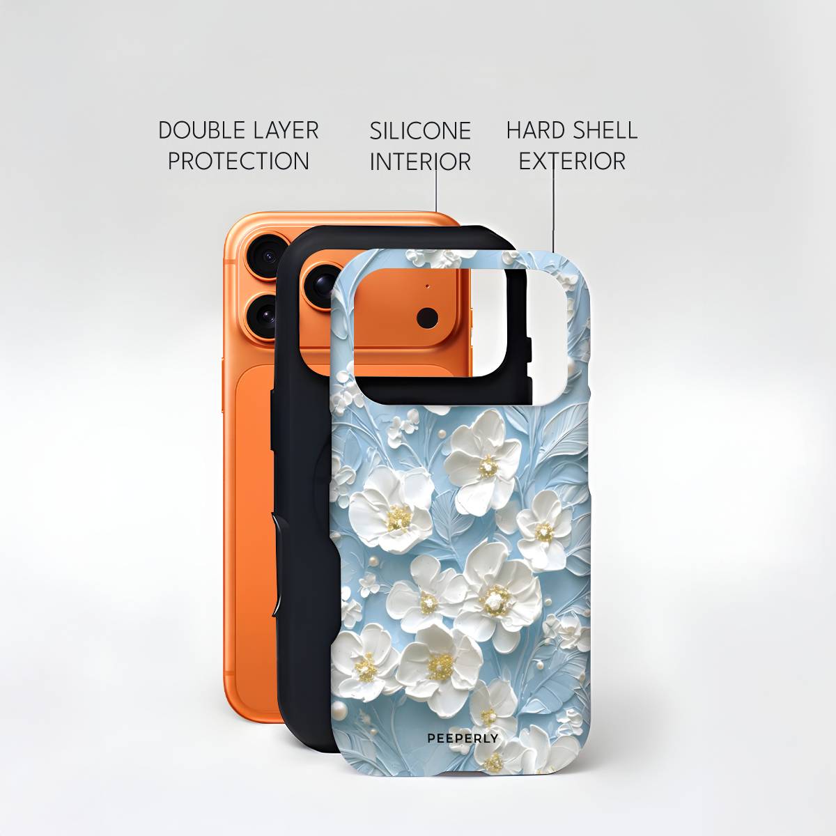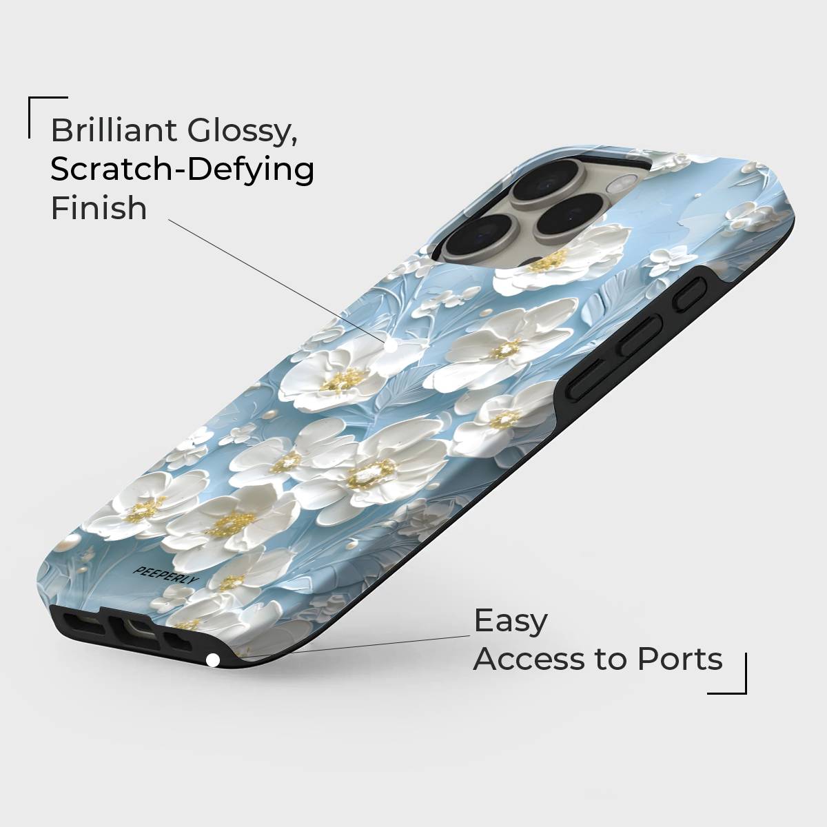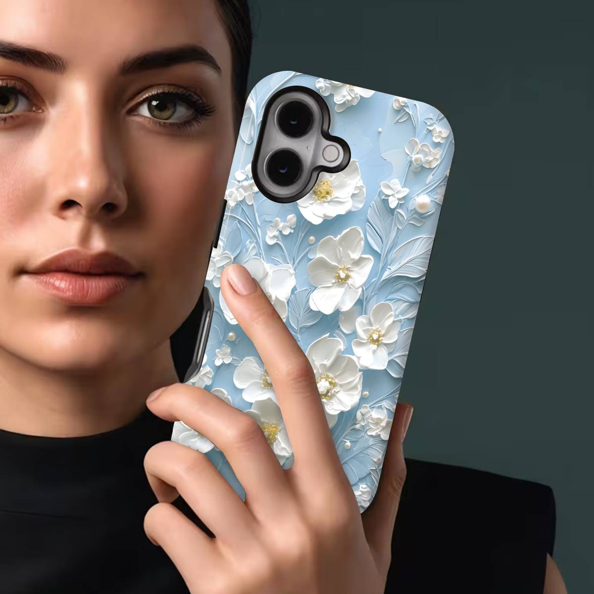 Embrace the beauty of nature’s elegance with the Blossom Grace Case — a stunning design that brings a touch of serenity and sophistication to your everyday style. Featuring delicately detailed white blossoms set against a soft blue background, this case captures the essence of grace, freshness, and timeless charm.