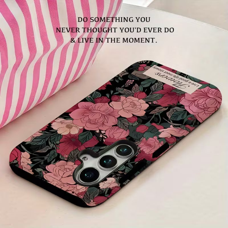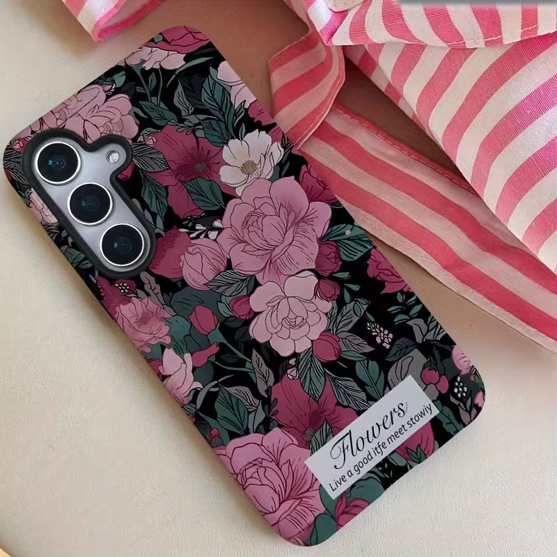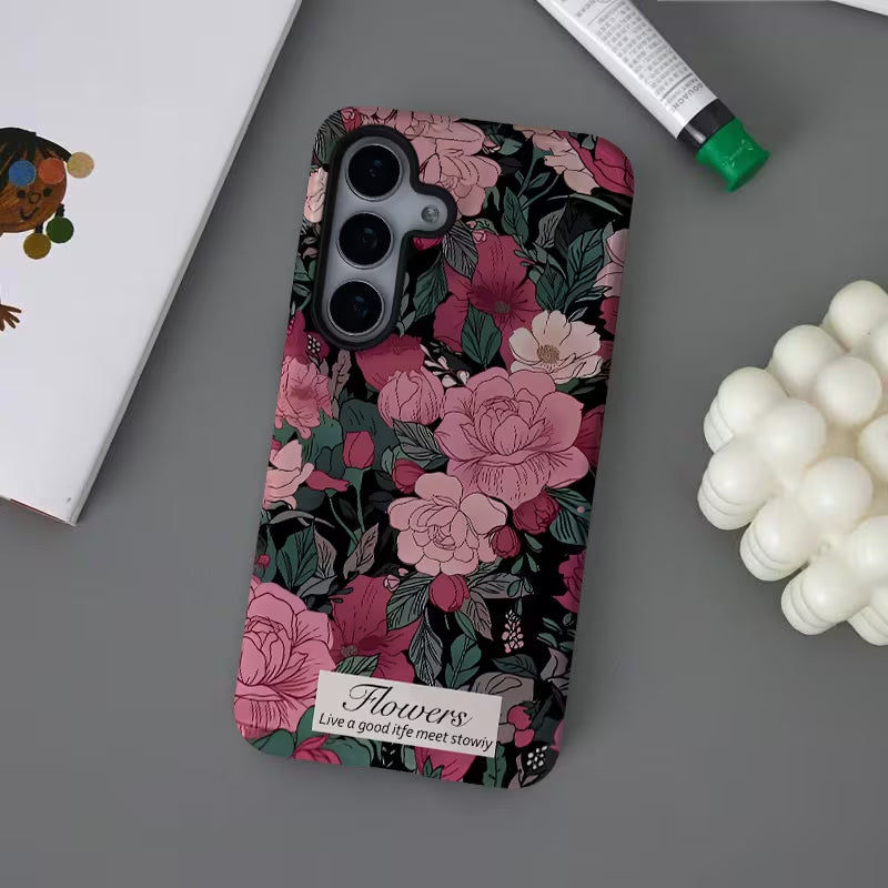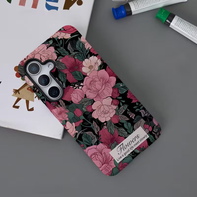 Blush Botanica blends soft romance with a rich, moody floral aesthetic. Delicate pink blooms unfold against a deep backdrop, creating a design that feels both elegant and expressive. Inspired by vintage gardens and timeless beauty, this case adds a graceful, feminine touch to everyday style.
