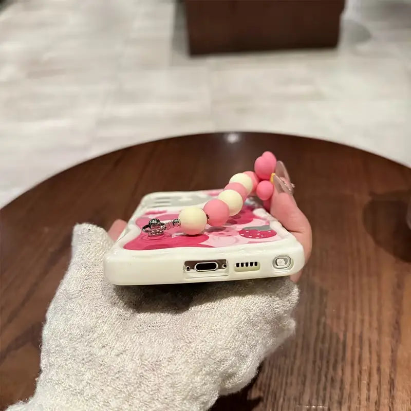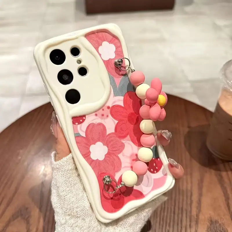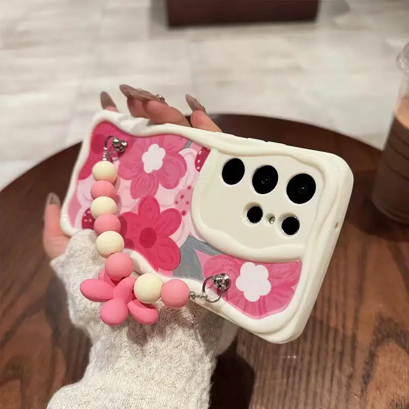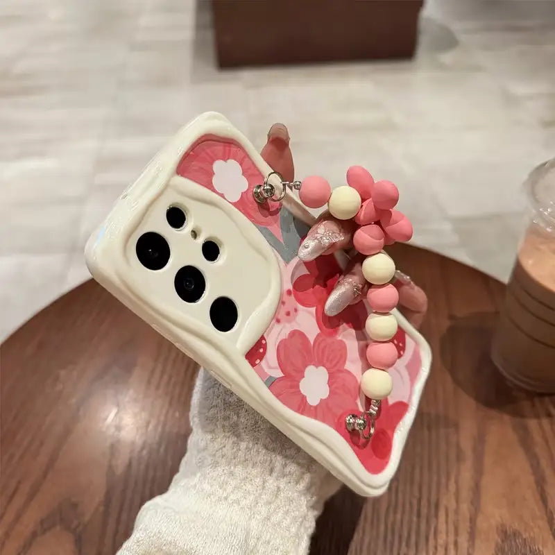 Add a sweet pop of charm to your everyday phone with the Blush Floral Beaded Wrist Case. Designed with a dreamy blush-pink floral pattern and a playful beaded wrist strap, this case blends cute aesthetics with practical comfort.