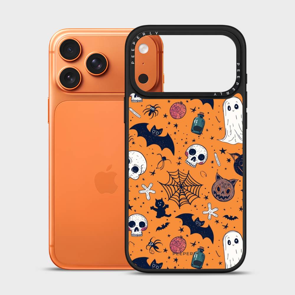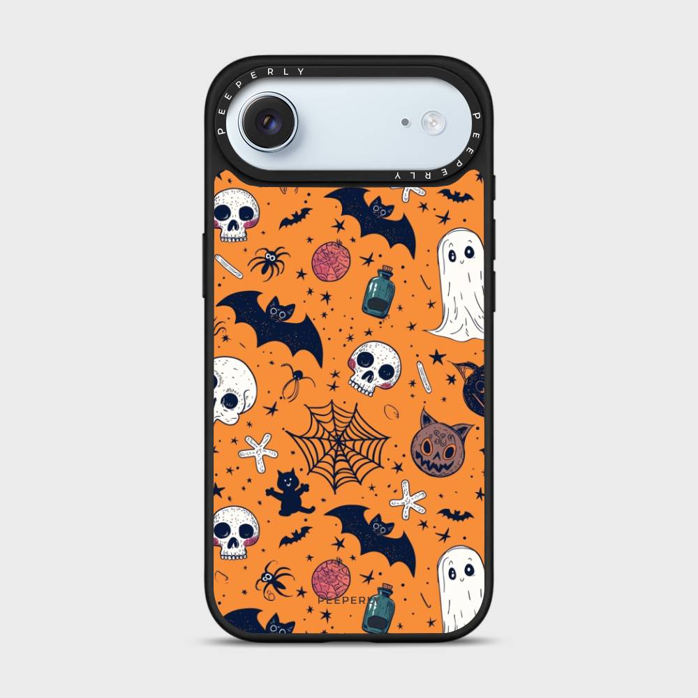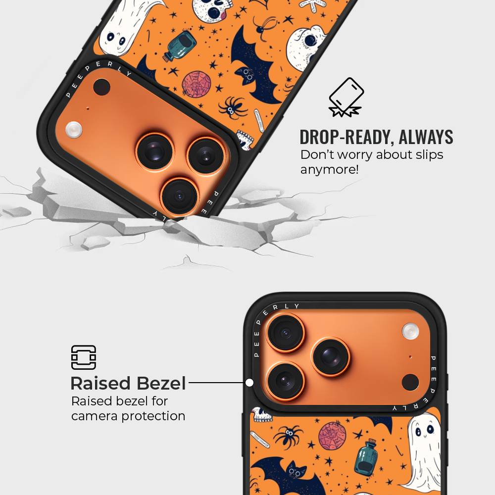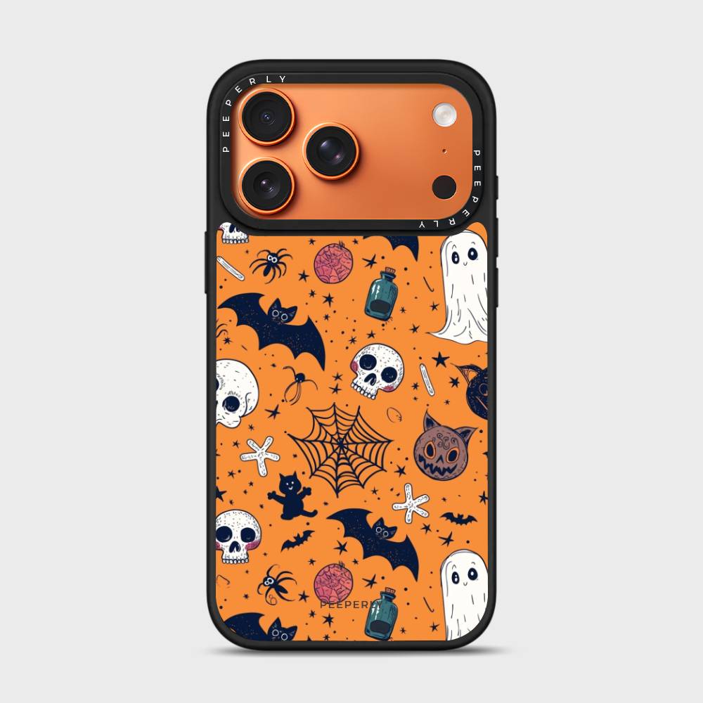 Bring the spirit of Halloween to your phone with the Boo Crew Case. Featuring a lively design of ghosts, bats, skulls, webs, and other spooky icons on a bold orange backdrop, this case adds a playful yet eerie charm to your everyday style.
