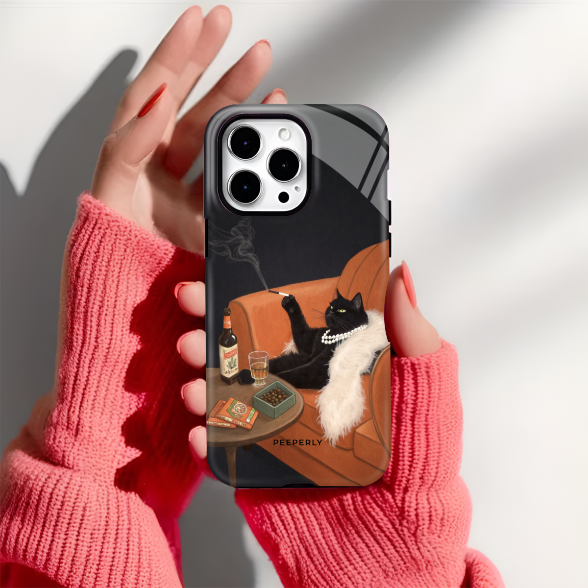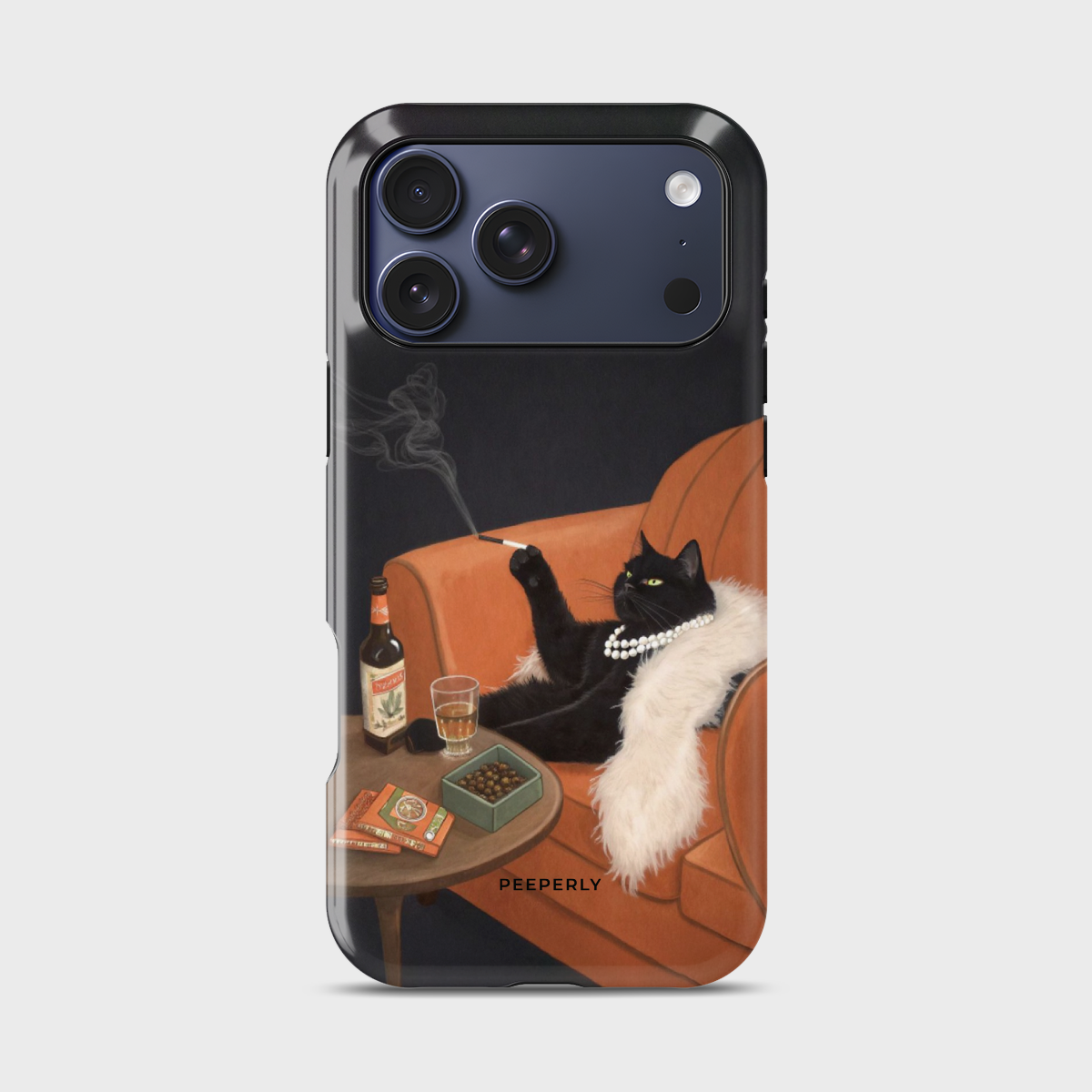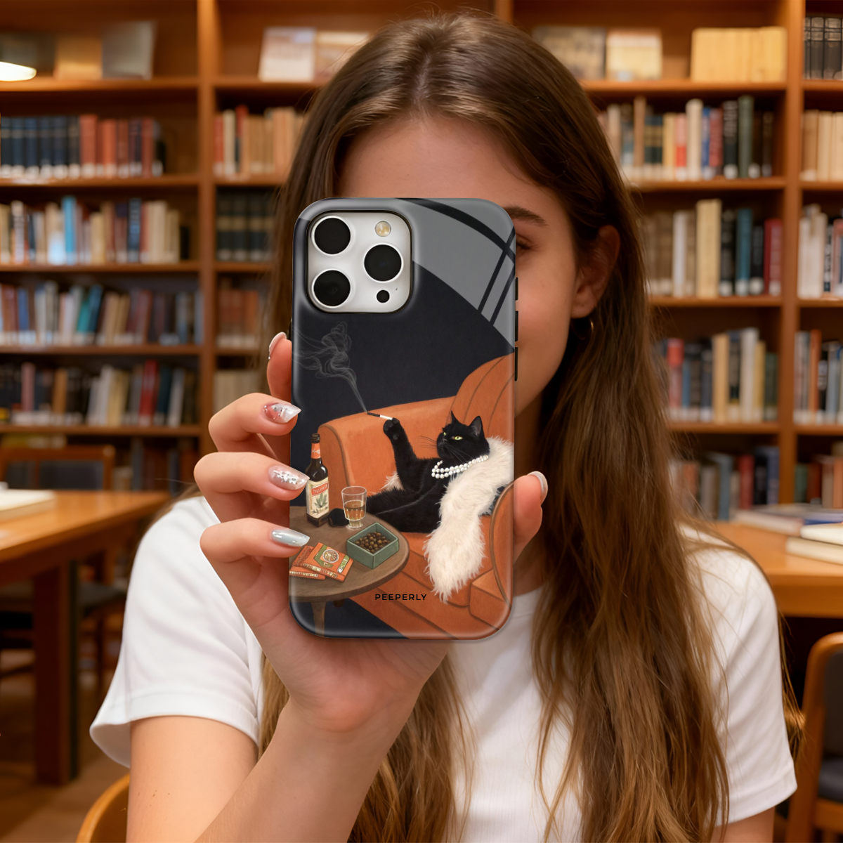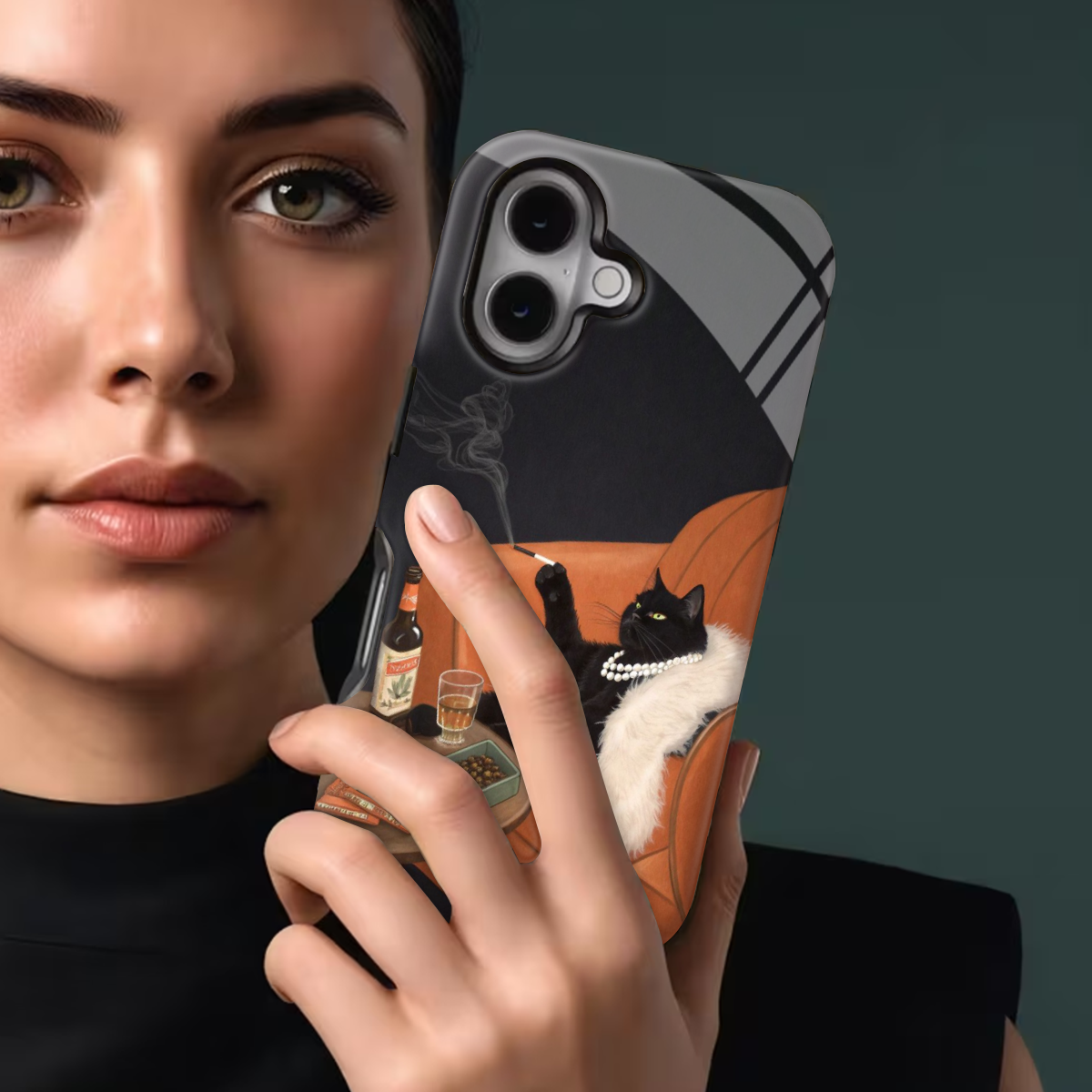 Step into a world of bold attitude and vintage luxury with Cat & Cognac. This striking design features a sleek black cat lounging in style, glass in hand and smoke in the air, embodying effortless cool and unapologetic confidence.