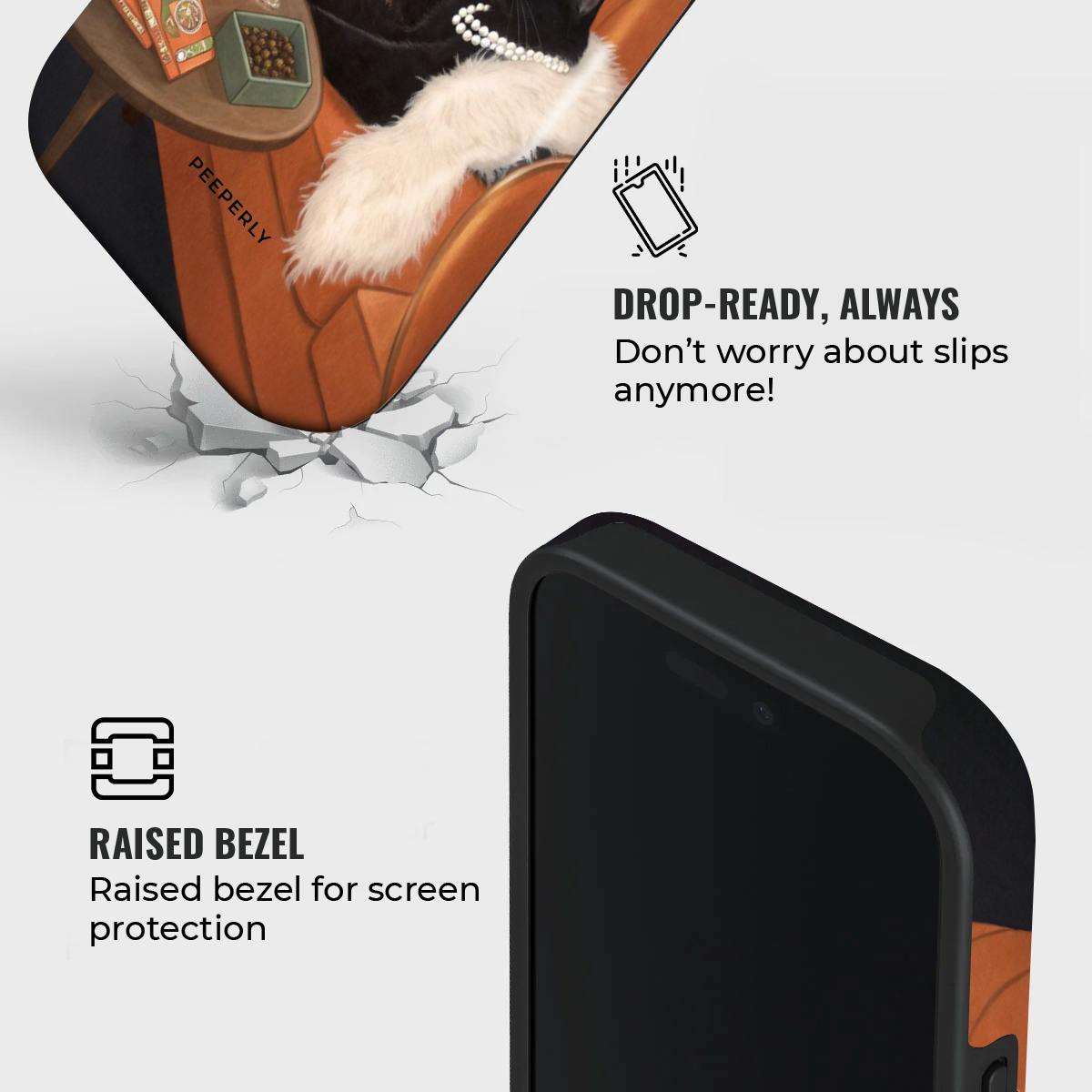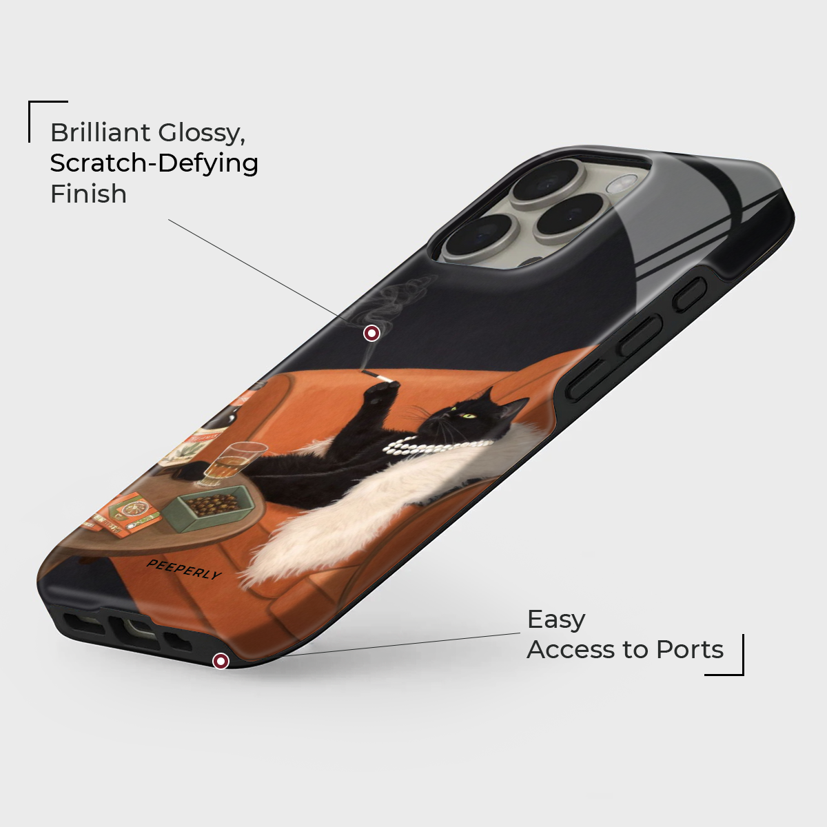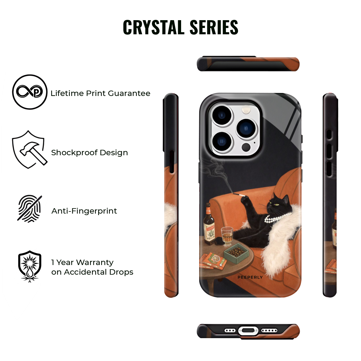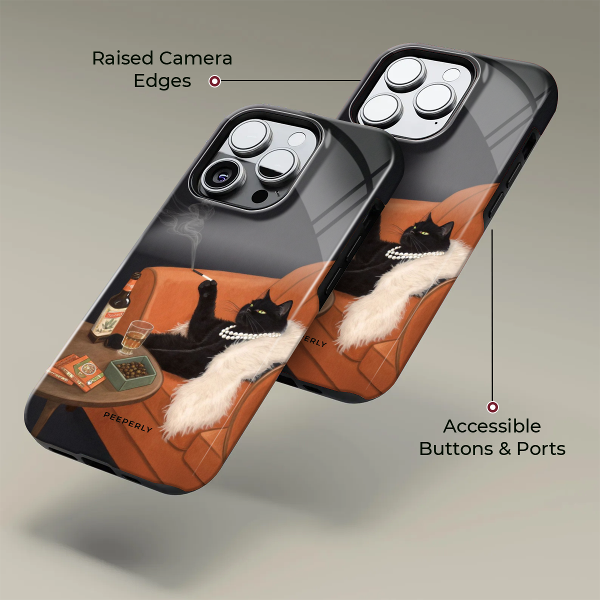 Step into a world of bold attitude and vintage luxury with Cat & Cognac. This striking design features a sleek black cat lounging in style, glass in hand and smoke in the air, embodying effortless cool and unapologetic confidence.
