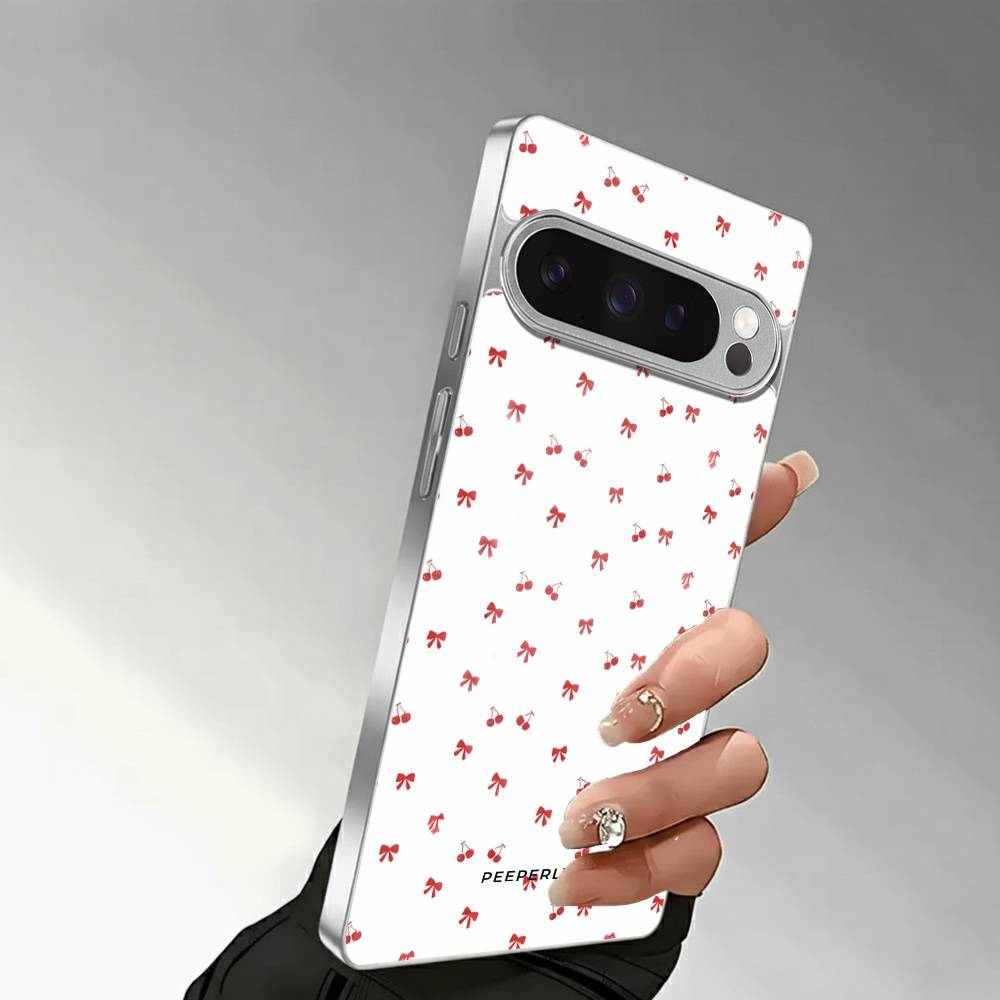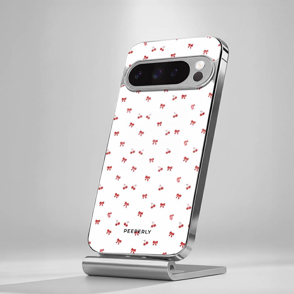 Add a sprinkle of sweetness to your everyday style with Cherry Bow Bliss. This adorable phone case features a charming pattern of tiny red bows and delicate cherry icons scattered across a clean white background—perfect for anyone who loves a soft, girly aesthetic.