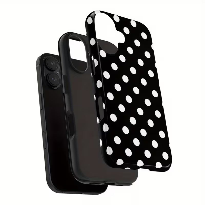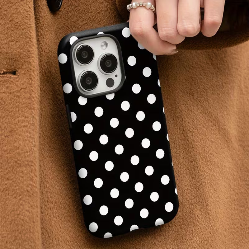 Timeless charm meets everyday protection with the Classic Polka Case. Featuring a bold black base dotted with crisp white polka dots, this design brings a playful yet elegant retro vibe that never goes out of style.