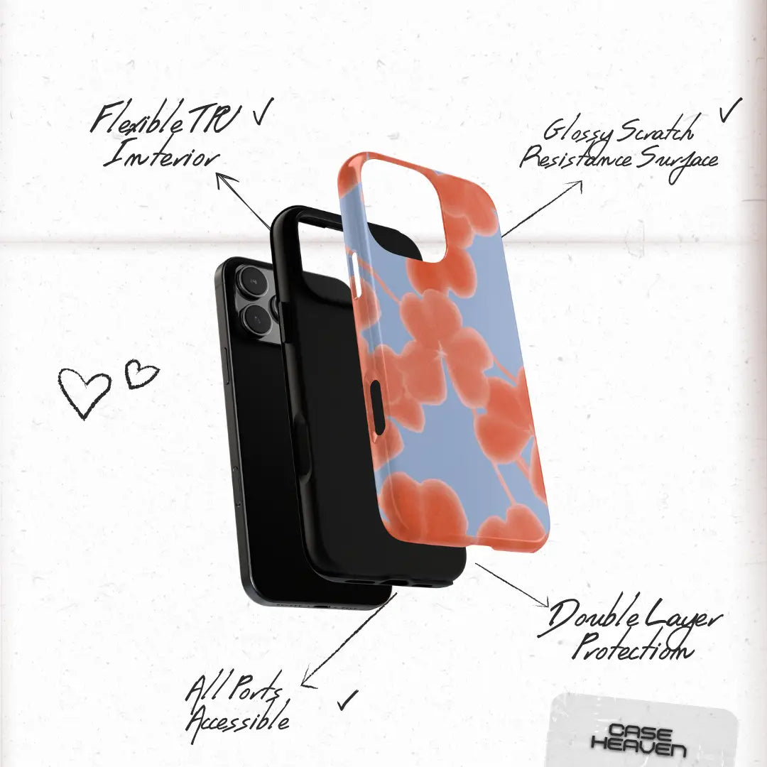 Soft as clouds and vibrant as spring blooms, the Cloud Blossom Glow Case brings a dreamy fusion of pastel skies and glowing florals to your phone. The airy blue base paired with warm coral blossoms creates a calm yet eye-catching look, perfect for everyday elegance.