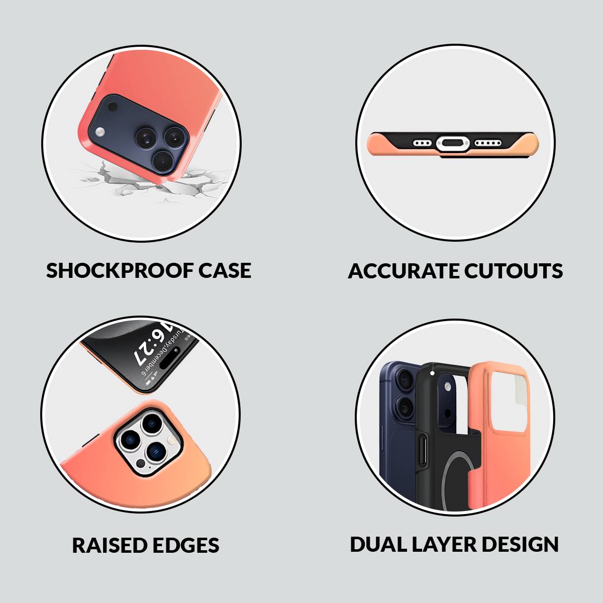 - Double-Layer Protection: Silicon interior cushions impacts + rigid PC exterior shields against drops and scratches.