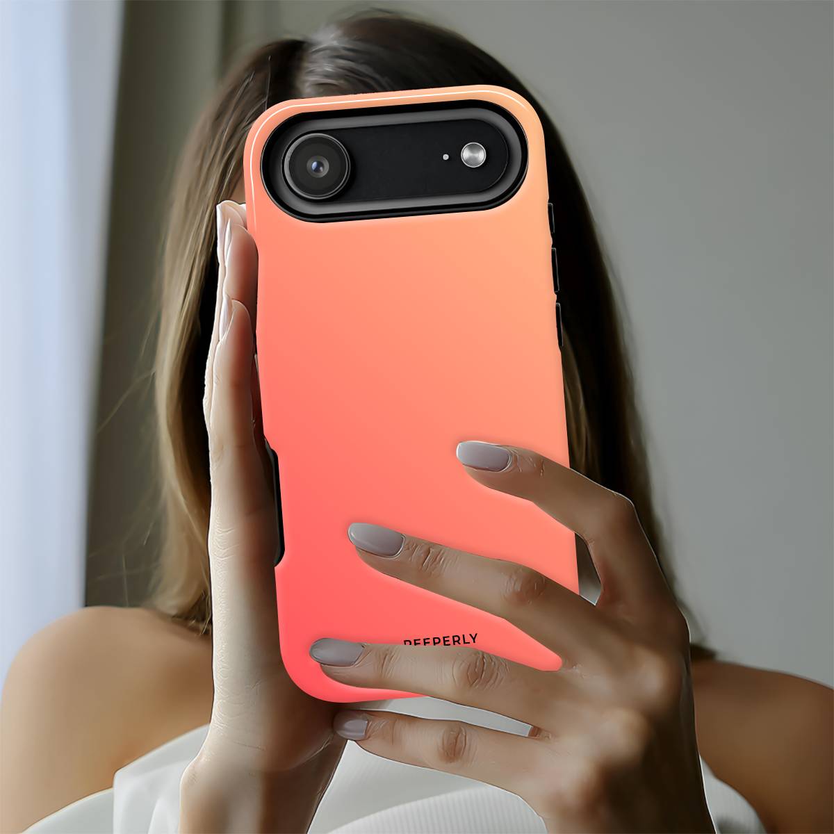 Coral Ember is a warm, modern phone case featuring a smooth coral-to-peach gradient paired with a bold copper camera accent. Radiating soft heat and sunset tones, it blends minimal design with vibrant energy. Perfect for those who love clean aesthetics with a lively, glowing edge.