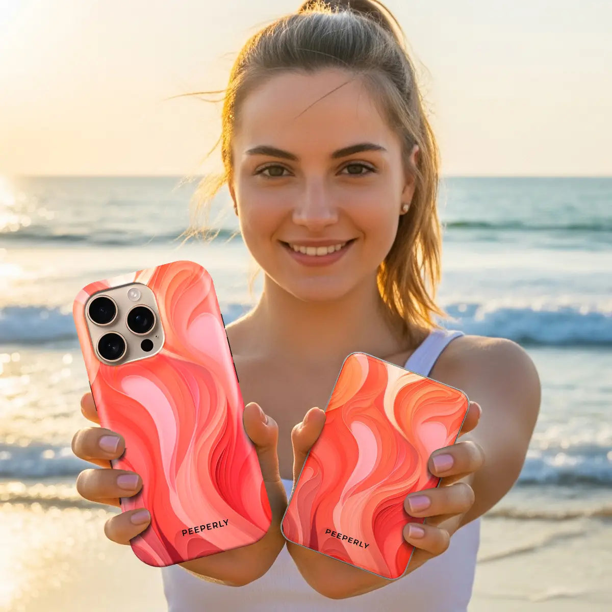 Warm, vibrant, and effortlessly chic. Coral Flow features soft, layered waves in radiant coral, blush pink, and peach tones, creating a smooth, fluid design full of warmth and movement. The gentle curves give it a modern, artistic feel while keeping the look light and uplifting.