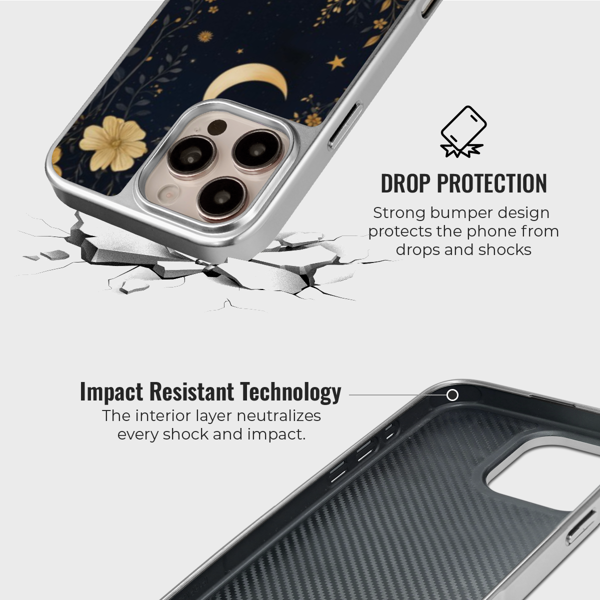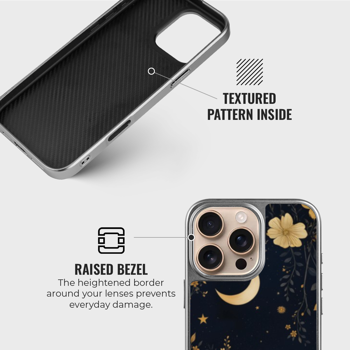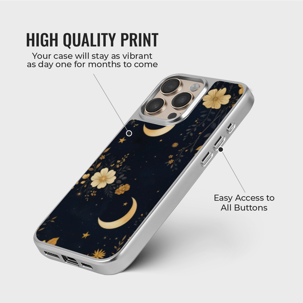 Unleash celestial charm with the Cosmic Spells phone case - where delicate florals entwine with shimmering moons and stars for an otherworldly vibe. This design blends ethereal botanicals with mystical cosmos, perfect for Grden, flower lovers, dreamers, and anyone who believes in a little magic.