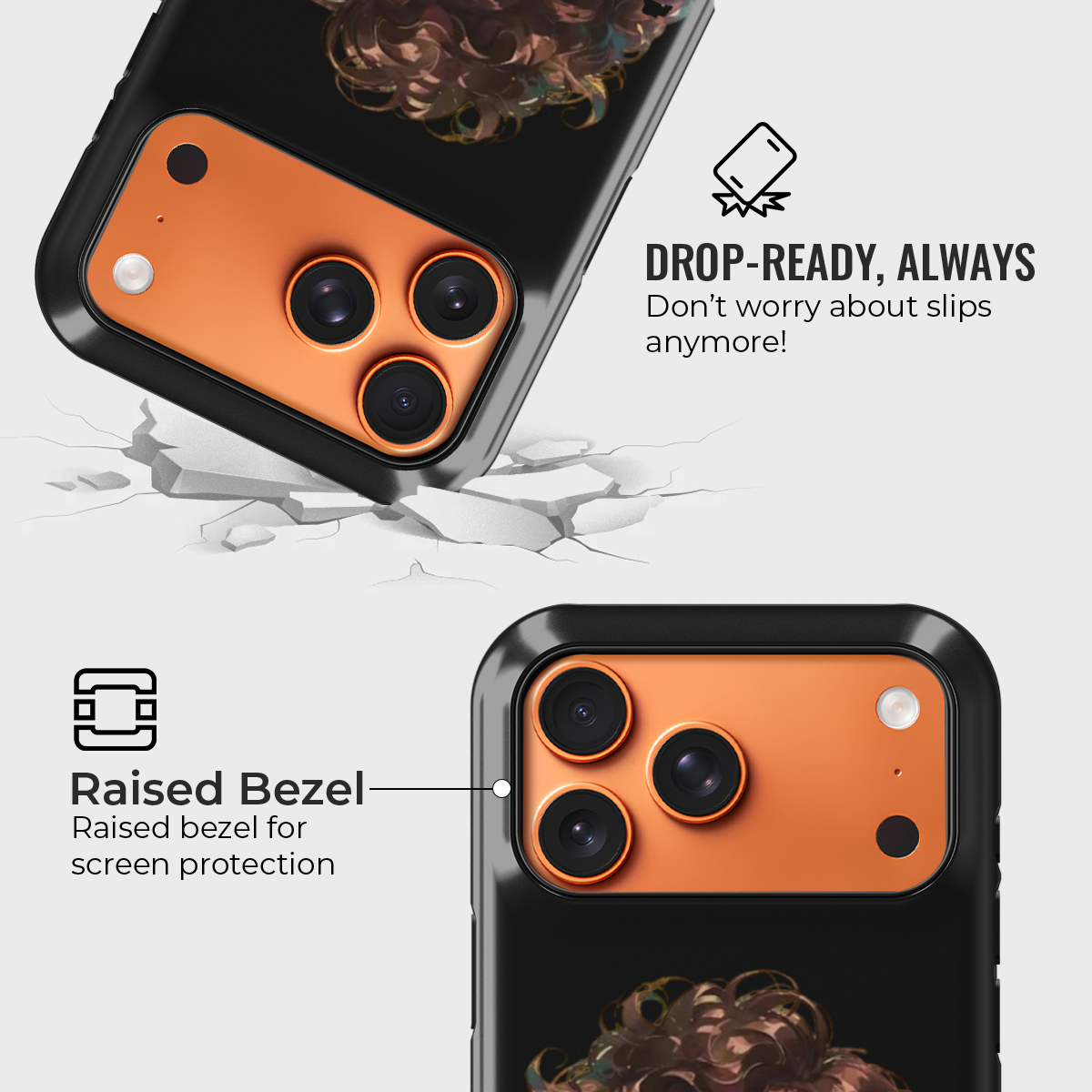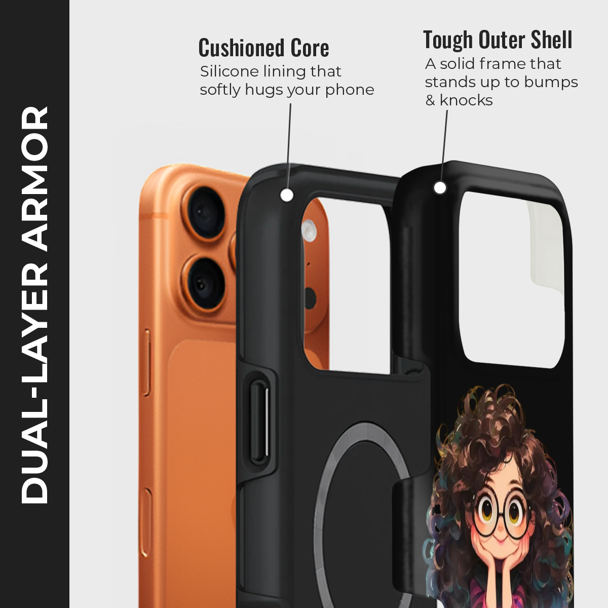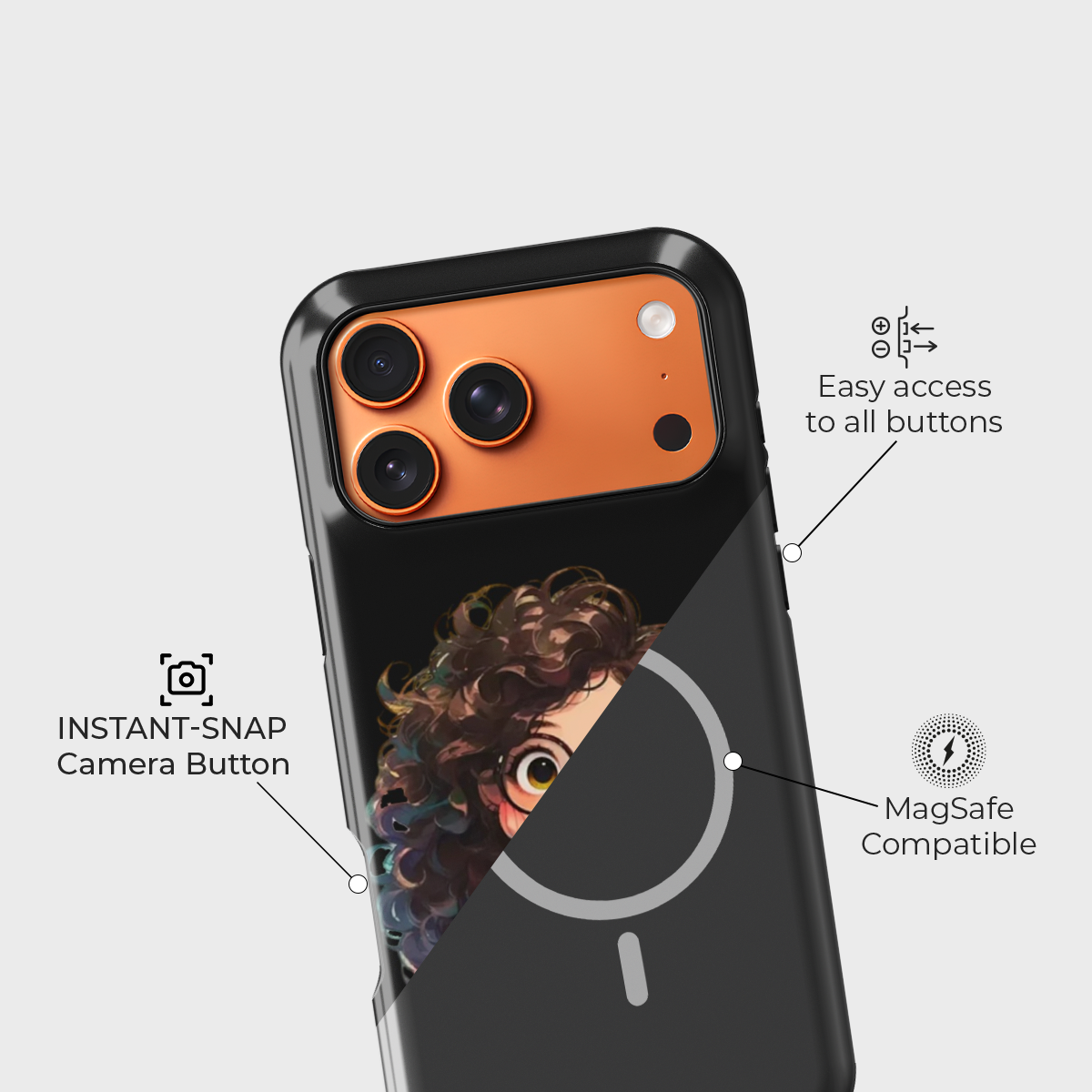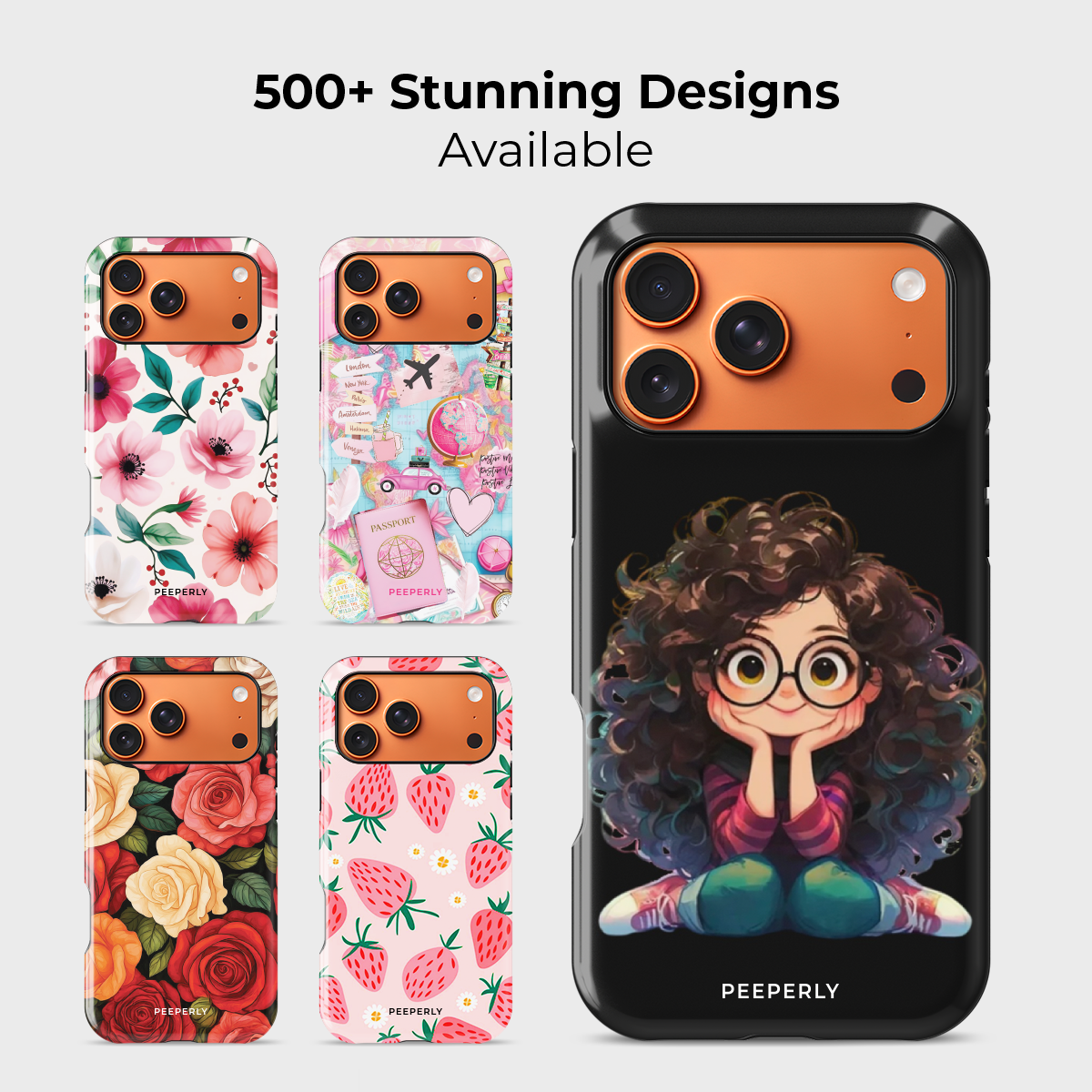 The Cozy Curls Case is a heart-stealing blend of charm, warmth, and personality. Featuring an adorable character illustration with voluminous curly hair, bright expressive eyes, and a relaxed, playful pose, this design instantly brings joy to anyone who sees it.