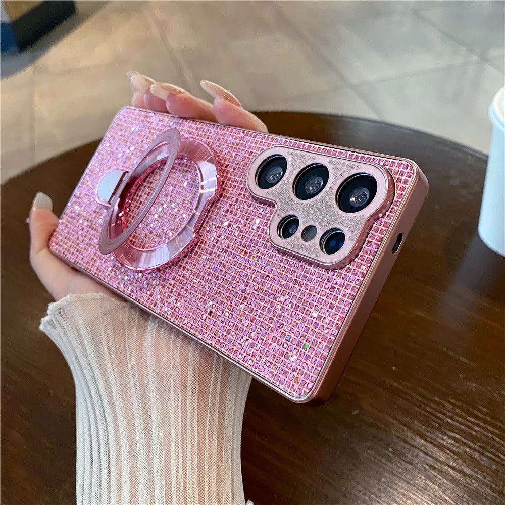 Turn everyday protection into a statement. The Crystal Grid Sparkle Magnetic Ring Case features a dazzling mosaic of micro-crystals that catch the light from every angle.