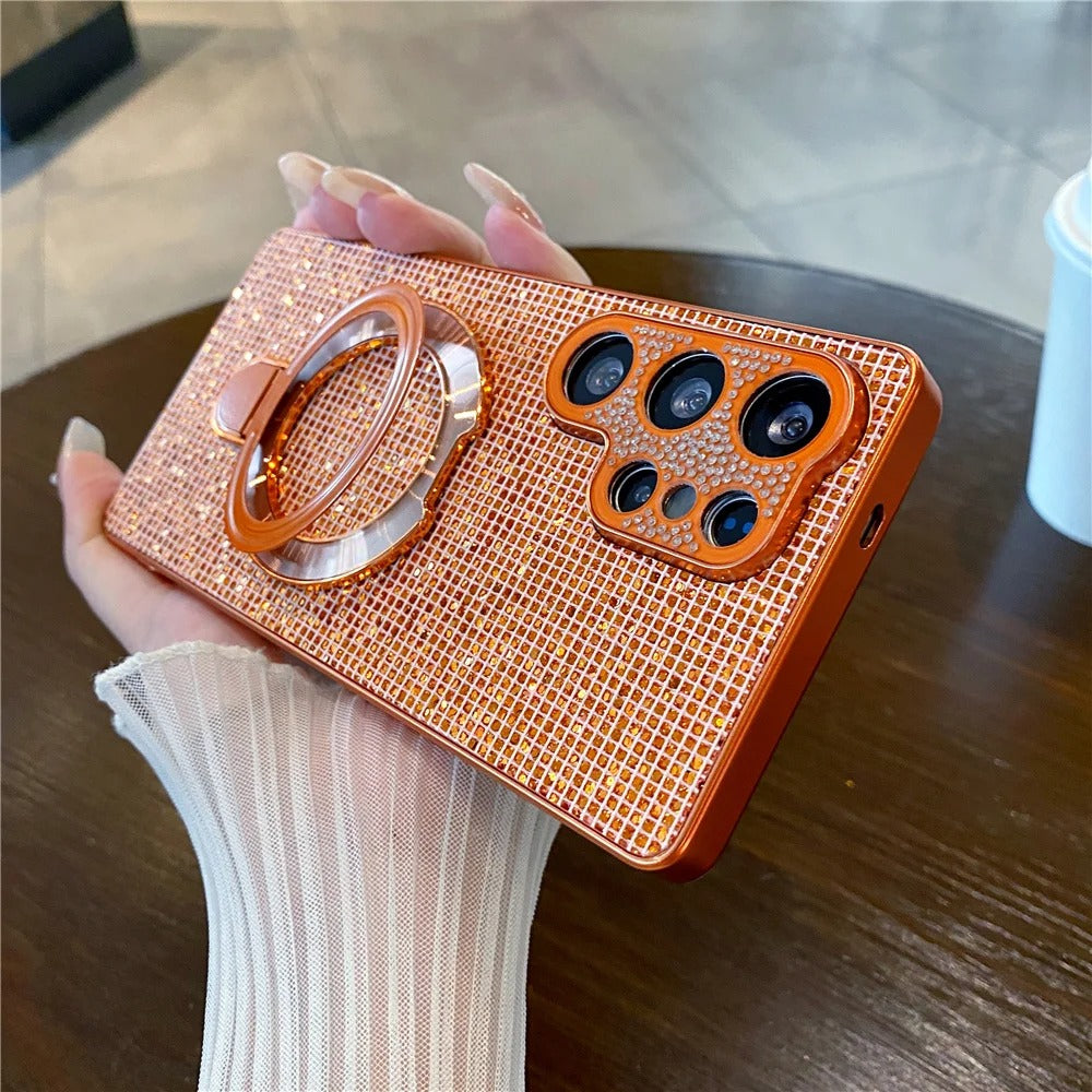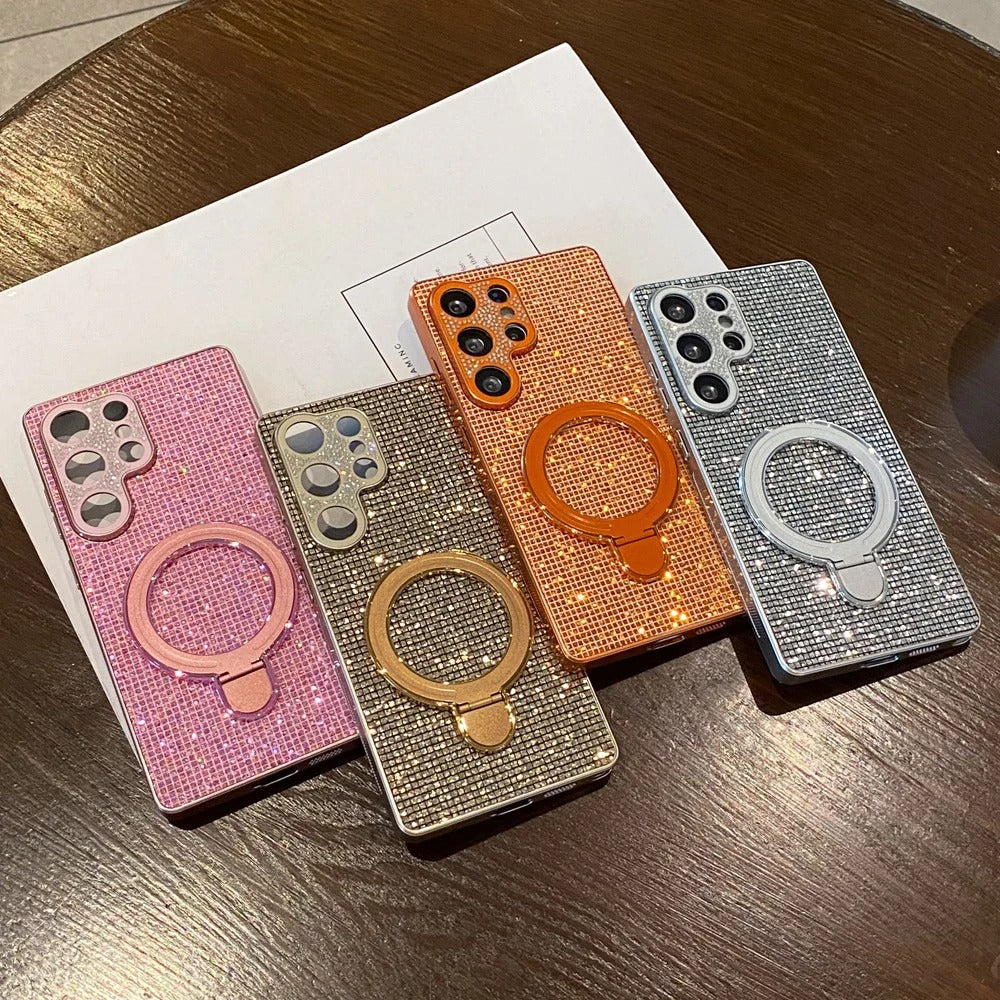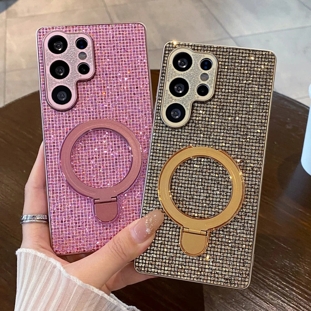 Galaxy S26 Series Crystal Grid Sparkle Magnetic Ring Case