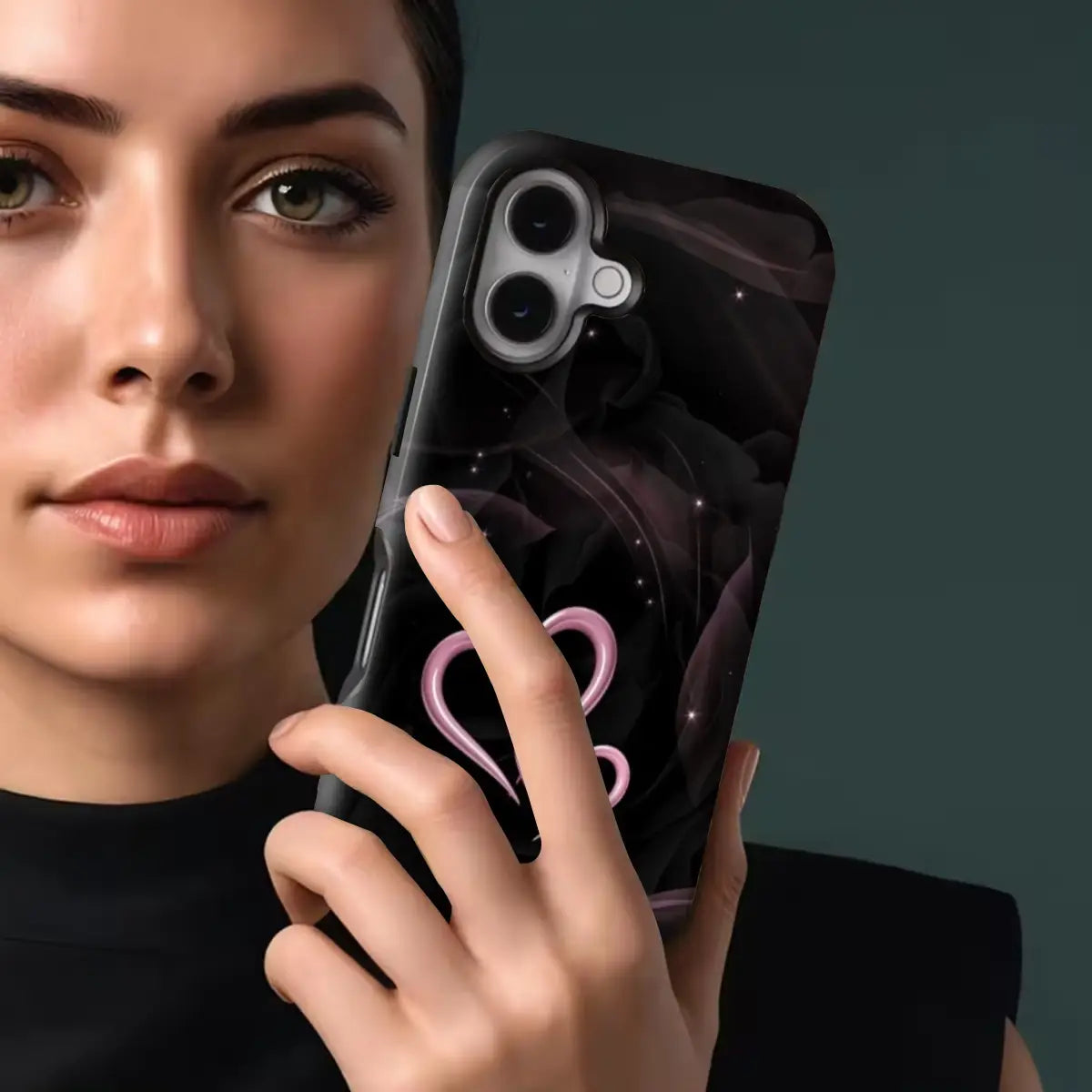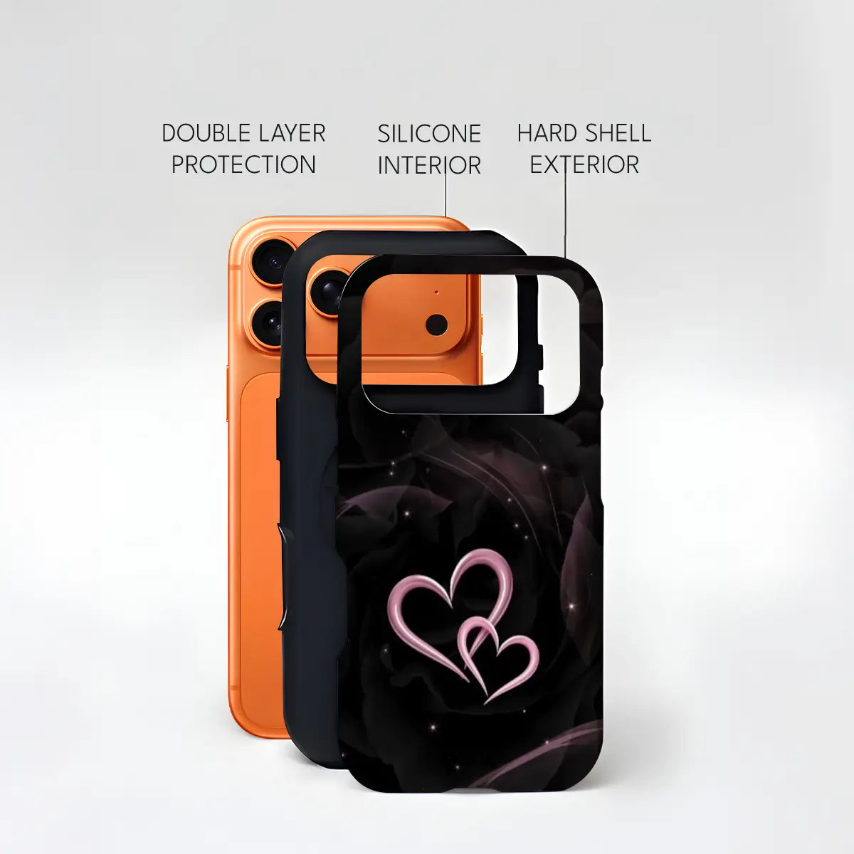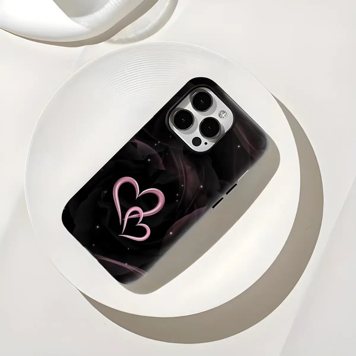 Celebrate love in its purest form with the Double Heart case. Set against a deep, elegant black background, the glowing twin-heart design adds a soft romantic touch with a modern edge. Subtle sparkle details create a dreamy night-sky effect, making this case perfect for those who love understated romance with a bold, stylish finish.