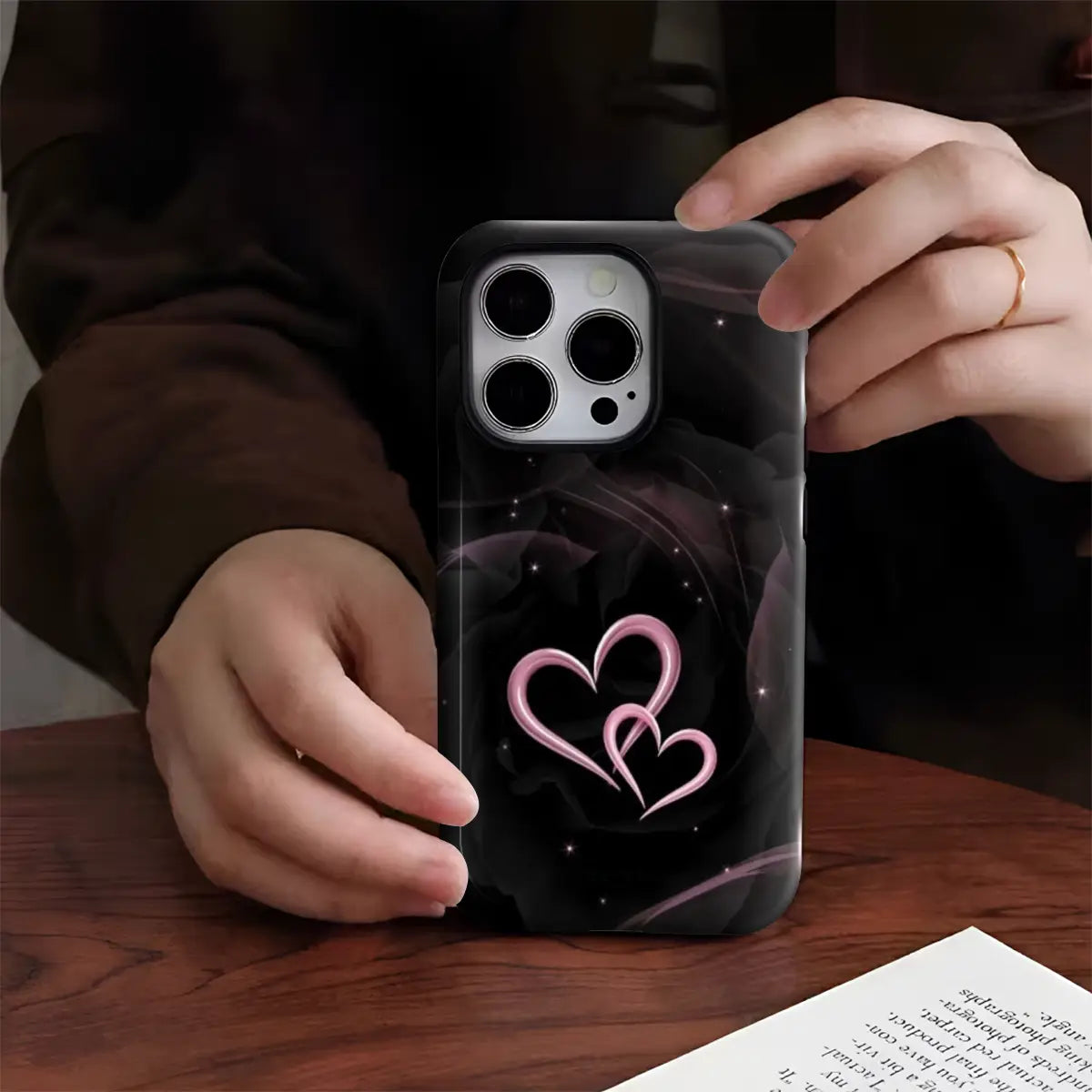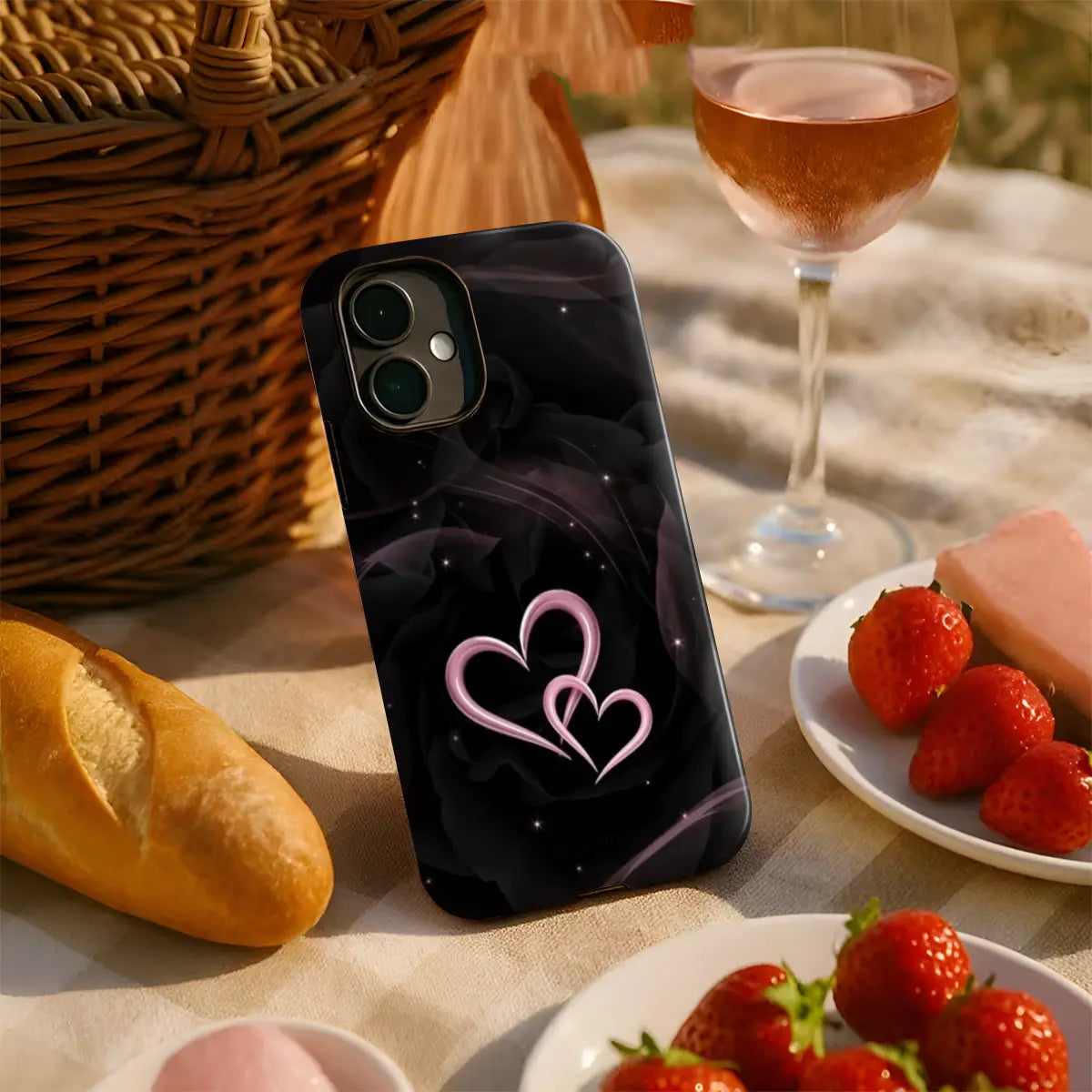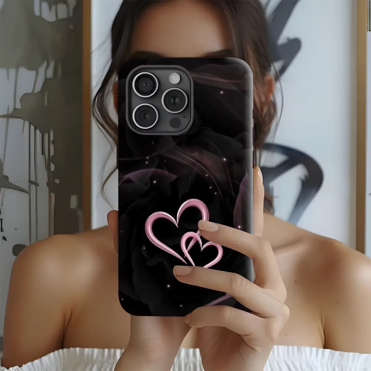 Celebrate love in its purest form with the Double Heart case. Set against a deep, elegant black background, the glowing twin-heart design adds a soft romantic touch with a modern edge. Subtle sparkle details create a dreamy night-sky effect, making this case perfect for those who love understated romance with a bold, stylish finish.