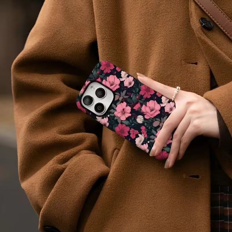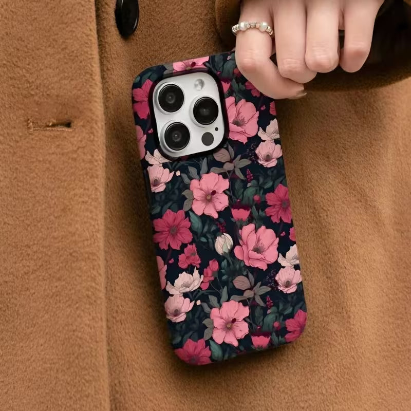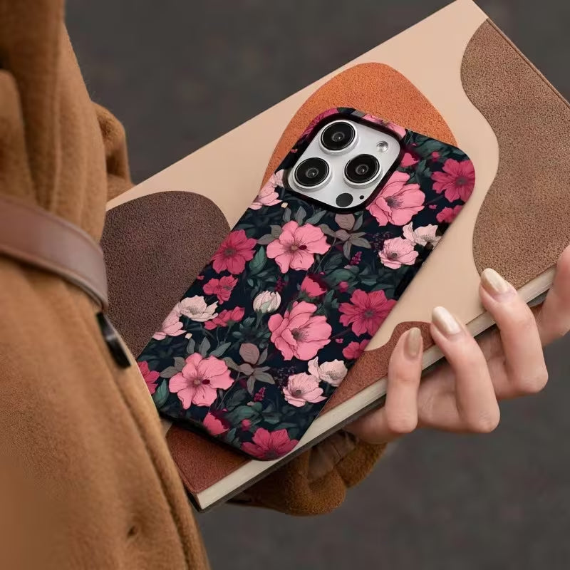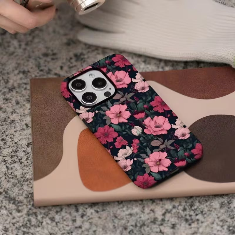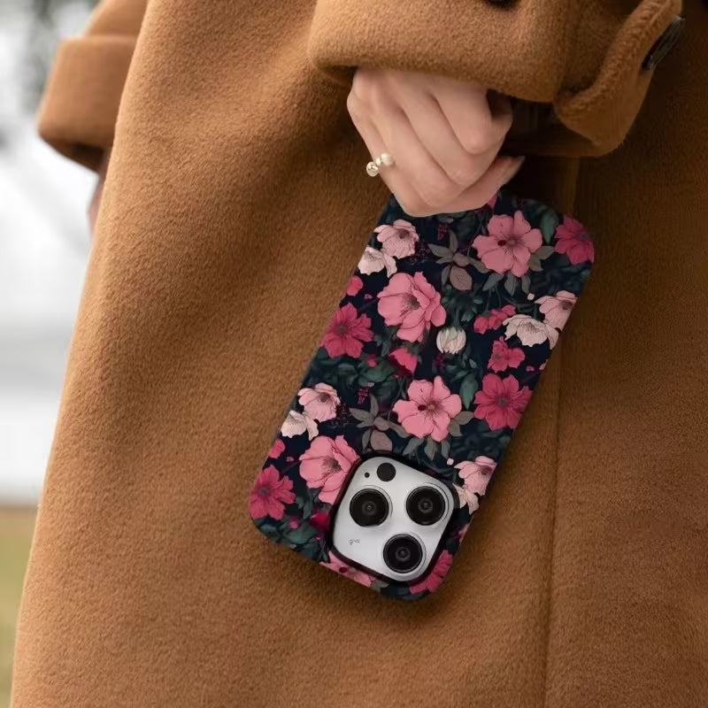 The Dusky Blossoms Case captures the quiet romance of twilight florals, blending deep, moody tones with soft pink blooms. Its elegant floral pattern adds a timeless, feminine charm while keeping the look refined and modern.