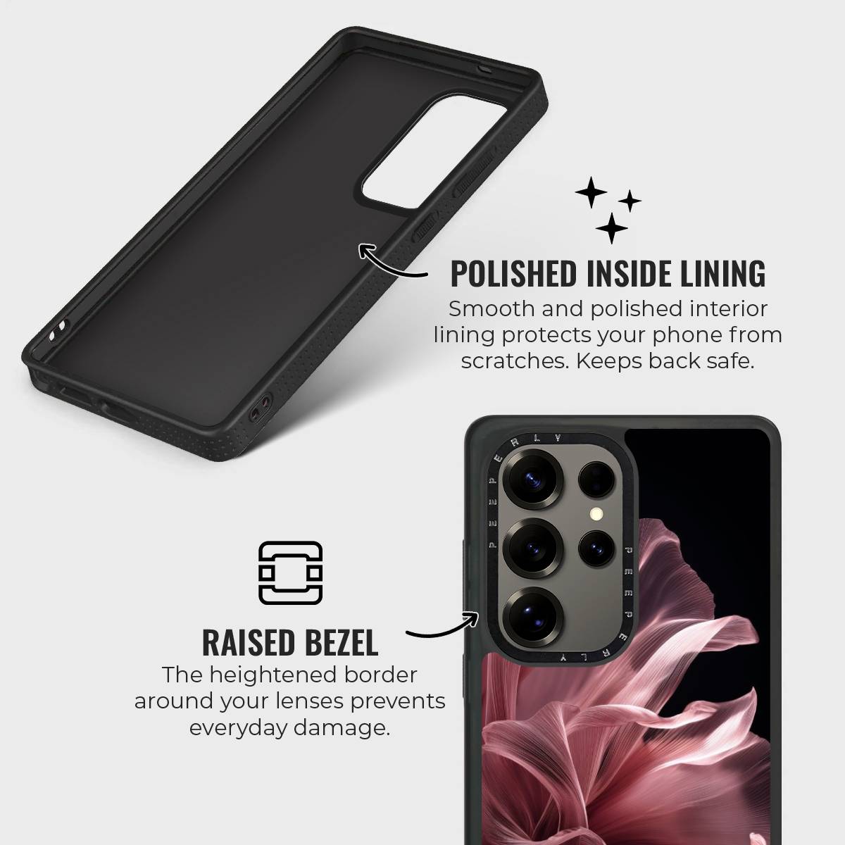 - Polished Inner Lining: Smooth lining shields the phone’s back from scratches.